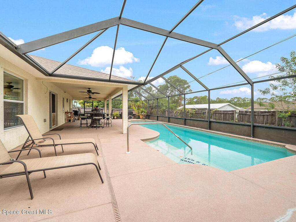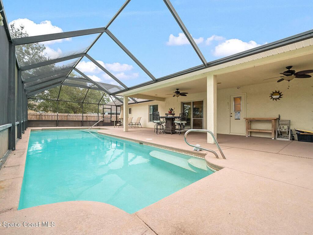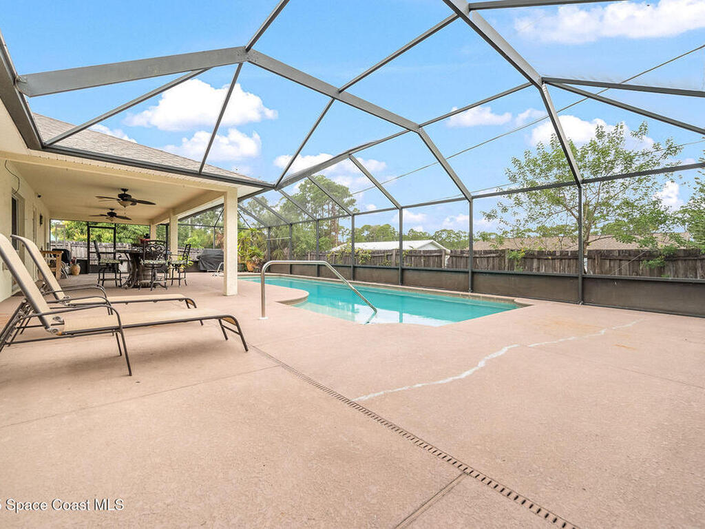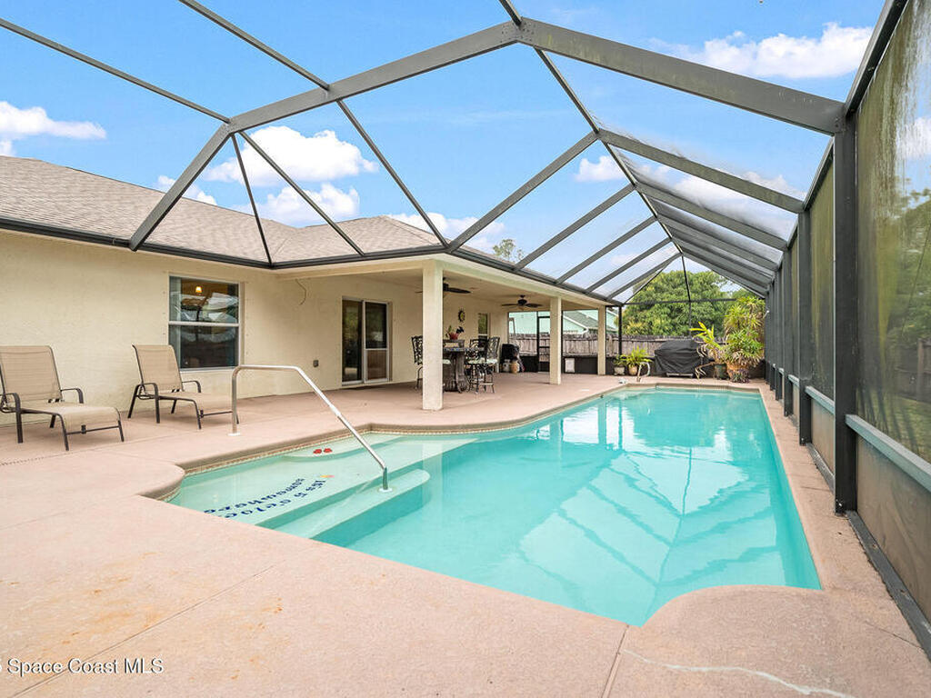 Amazing opportunity to own this 2010 built POOL home on city water and sewer! Brand new roof 2025, storm shutters, generator transfer switch and wired for ADT security system providing peace of mind and affordable insurance premiums. Large screened lanai out back with oversized heated swimming pool great for exercising and enjoying the Florida lifestyle all year round even on chilly days. The interior features a split open concept floorpan with 3 bedrooms and bonus room that can be used for office or an additional bedroom if needed. Both bathrooms have door out to pool area for your convenience. This is not your typical cookie cutter floorpan and features arched doorways, rounded corners, built ins, and many windows for natural light inside the home. Oversized driveway and two car garage for ample parking. Spacious backyard with two gates and blooming Brogden avocado tree in front of home. The AC system just replaced in 2022 and there is also a water softening system for