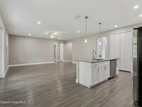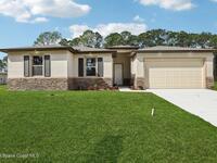 One or more photo(s) has been virtually staged--New Construction. This Luxurious 4-bedroom, 2.5 Bath Property is exquisitely built on an OVERSIZED LOT with all of the upgrades nestled in the heart of Palm Bay. Inside you will find a wonderfully open floor plan perfect for gatherings and entertaining. The capacious Chef's Kitchen is stylishly equipped with an island, solid wood cabinets, stainless steel appliances and ample storage. The contemporary living space is bursting with natural light and a flowing layout that is inviting and relaxing. Luxuriate in the vast Primary Suite that offers a collection of modern conveniences. This beautiful house is full of INCLUDED upgrades: solid wood soft close cabinets in the kitchen and in the bathrooms, luxury vinyl plank flooring (no carpet), and floor-to-ceiling tiles in the showers, granite countertops in the kitchen and baths, 9'4'' ceilings.