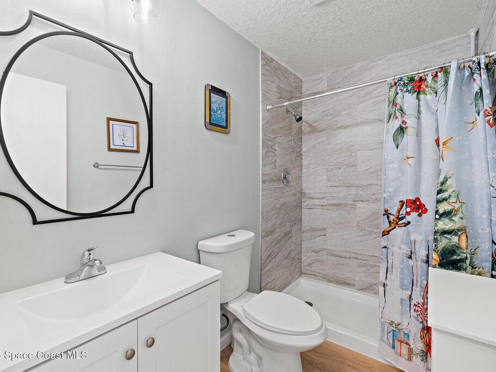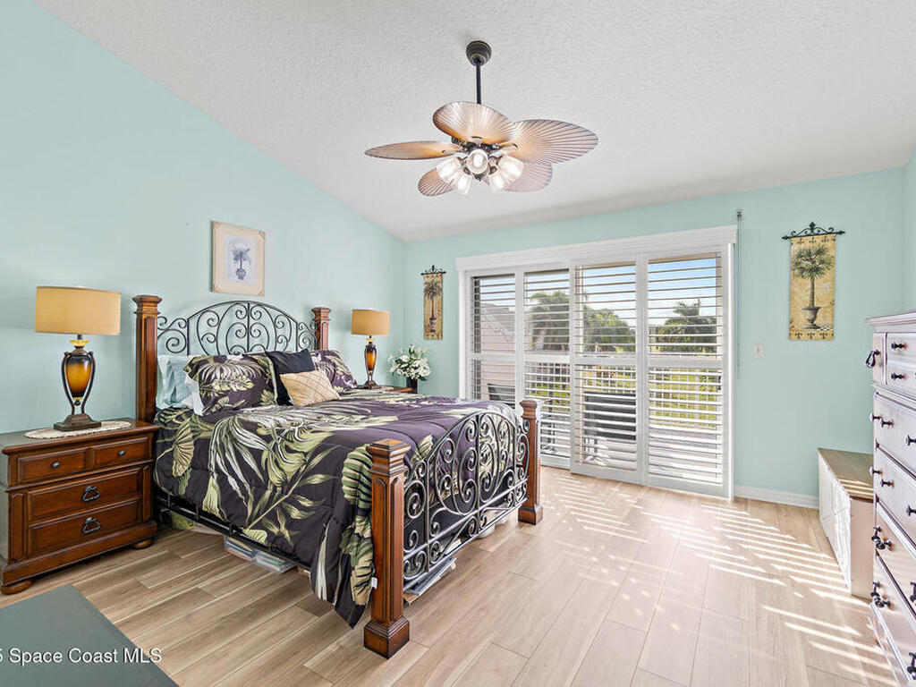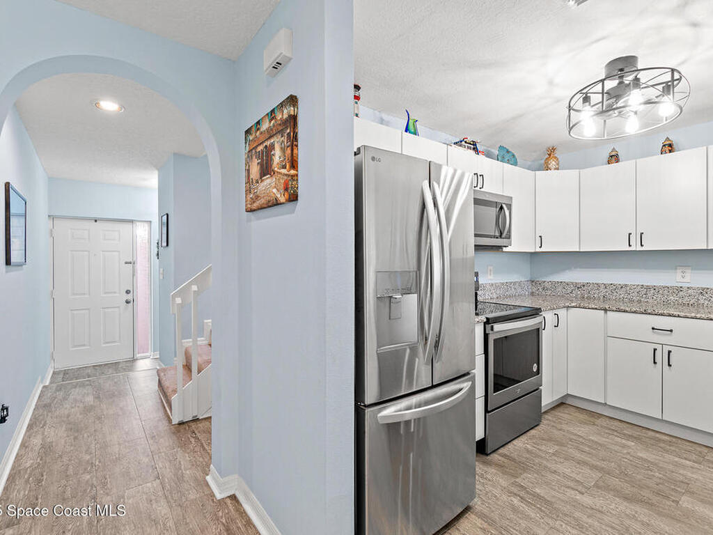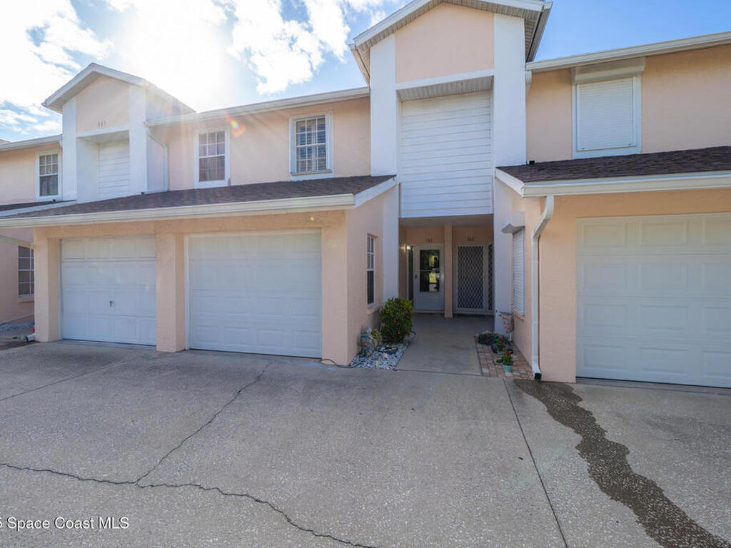 Welcome to Townhomes of Cocoa Beach, a community ideally located between the ocean and river in a sought-after neighborhood. Unlike traditional condos with boxy layouts, this modern home offers a house-like feel with all the advantages of low-maintenance condo living--and no milestone inspection required. Upstairs, both bedrooms feature private ensuites, dual closets, vaulted ceilings, Plantation & storm shutters. The main suite is exceptionally large with a sprawling balcony overlooking lush palm trees & green space. Both bathrooms offer granite vanities & elegant tile finishes. Modern granite kitchen has plenty of cabinets & newer stainless appliances. 1st floor powder room, laundry w/utility sink & attached one-car garage with epoxy floor & impact-rated door. Additional highlights include new water heater, roof, vinyl flooring, newer HVAC & fresh paint. Close to the Cocoa Beach Pier, Publix, dining & shopping, this condo's location & features make it truly stand out. Schedule today!