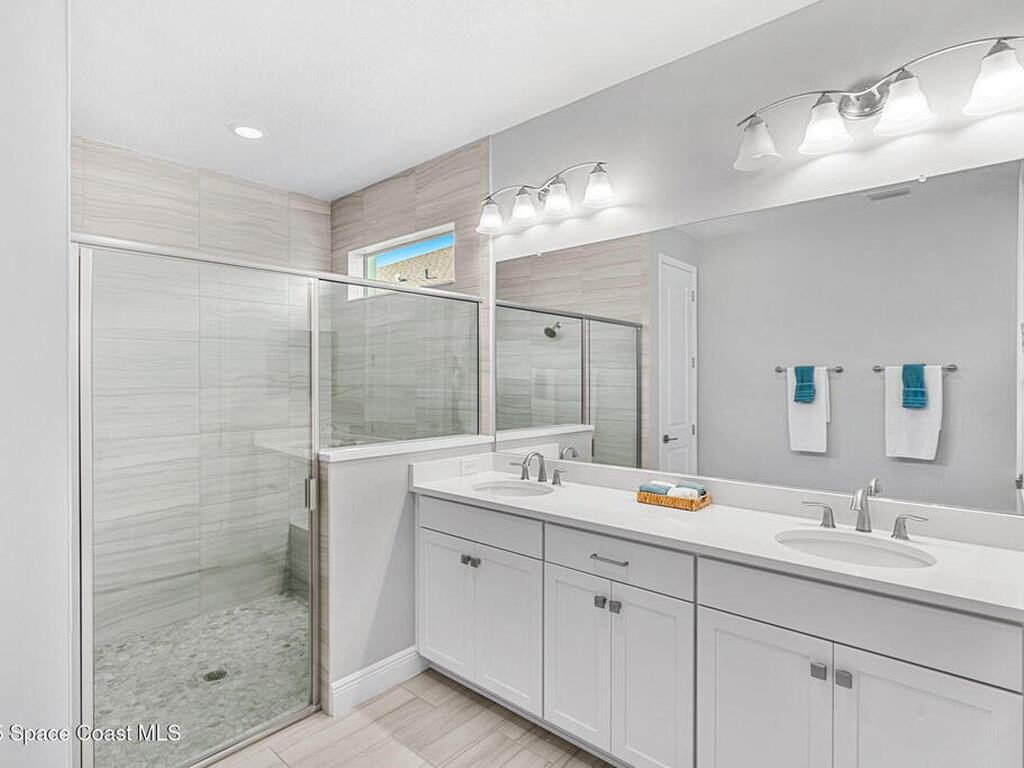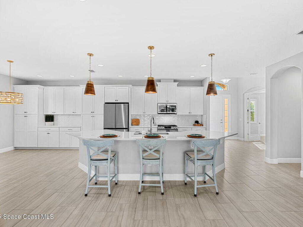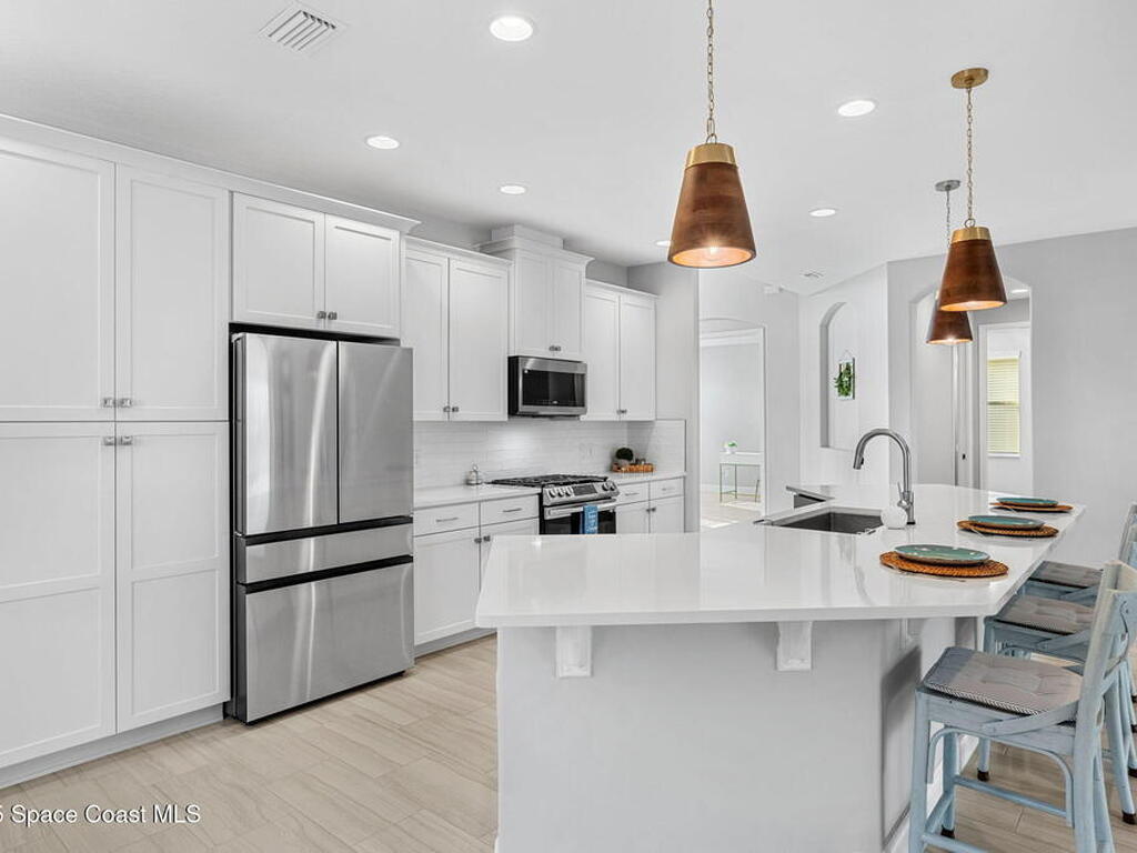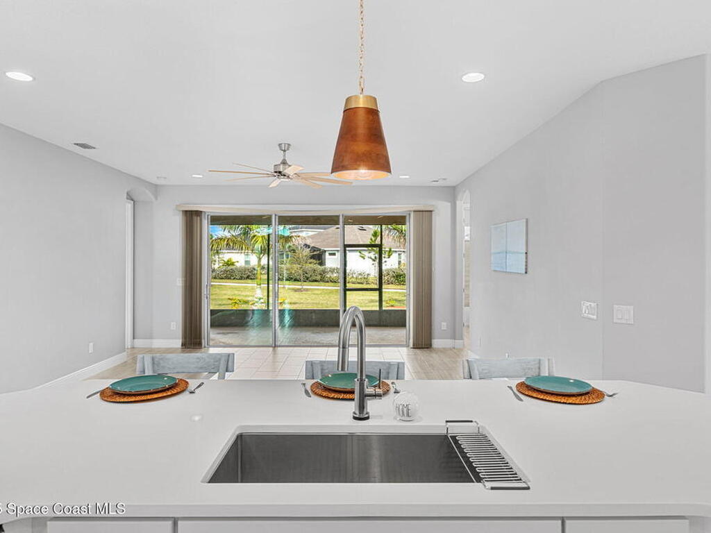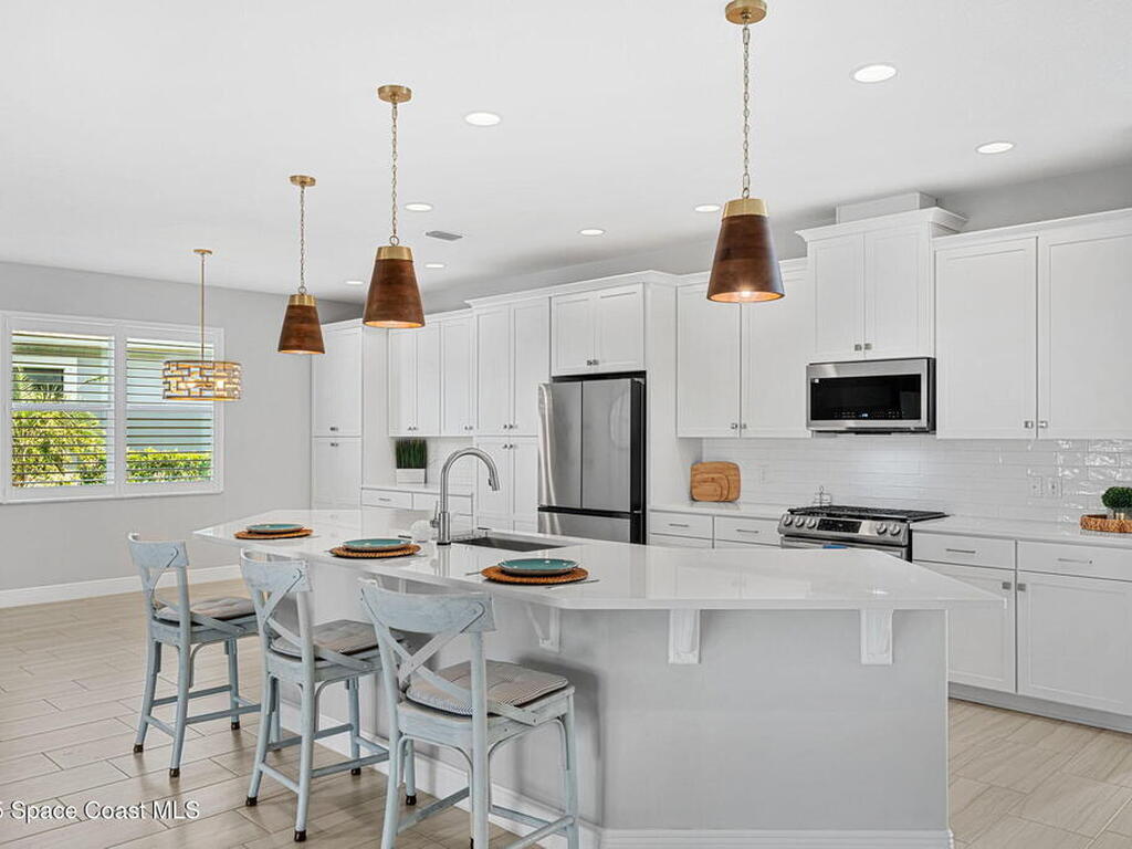 Welcome home to a stunning single-family residence located in the highly desirable community of Sendero Cove in Viera West. Built in 2022 and featuring the Madison floor plan, this modern home offers 2, 283 square feet of thoughtfully designed living space with 4 bedrooms and 2.5 bathrooms.Upon entry, you are welcomed by a bright, open-concept layout that seamlessly connects the living, dining, and kitchen areas. The chef-inspired kitchen serves as the centerpiece of the home, featuring quartz countertops, stainless steel appliances, upgraded cabinetry with pull-out drawers, and a gas stove for precision cooking.Designed with comfort, safety, and efficiency in mind, the home includes impact windows at the front, hurricane shutters throughout, and a tankless gas water heater, providing peace of mind and energy efficiency year-round.Step outside to enjoy Florida living at its finest on the screened-in rear lanai, or take full advantage of
