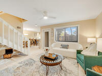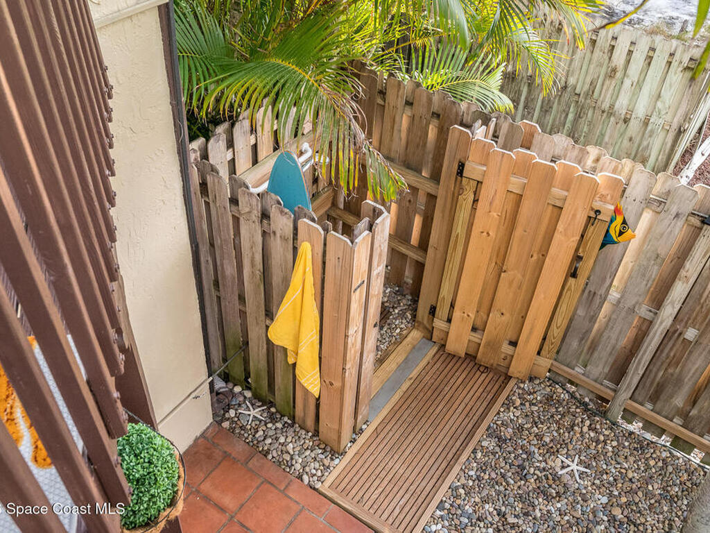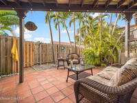 Where else can you live just 412 feet from the Atlantic Ocean at this price? Secure your own slice of coastal living in this updated townhome, perfectly positioned between the Intracoastal Waterway and the ocean. Start your mornings with an easy walk to the shoreline for sunrise and sea-turtle season, and spend evenings enjoying sunsets from your private lanai or with neighbors at the pier.This 2-bedroom, 1.5-bath townhome has been thoughtfully updated, offering abundant natural light and sleek new fixtures that enhance the clean, modern feel. The lanai features an outdoor shower, accent lighting, and Christmas Palms, creating a tranquil retreat after beach time. The upstairs balcony also features lighting, ideal for unwinding and taking in coastal breezes.Residents enjoy low HOA fees and a well-maintained, activity-rich community offering two pools, a fitness center, tennis, pickle-ball, shuffleboard, a clubhouse, and more--all within a short walk of beach access and