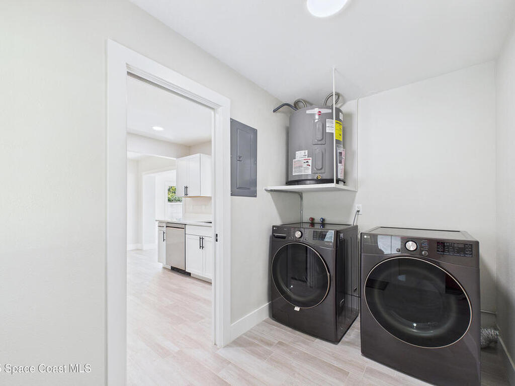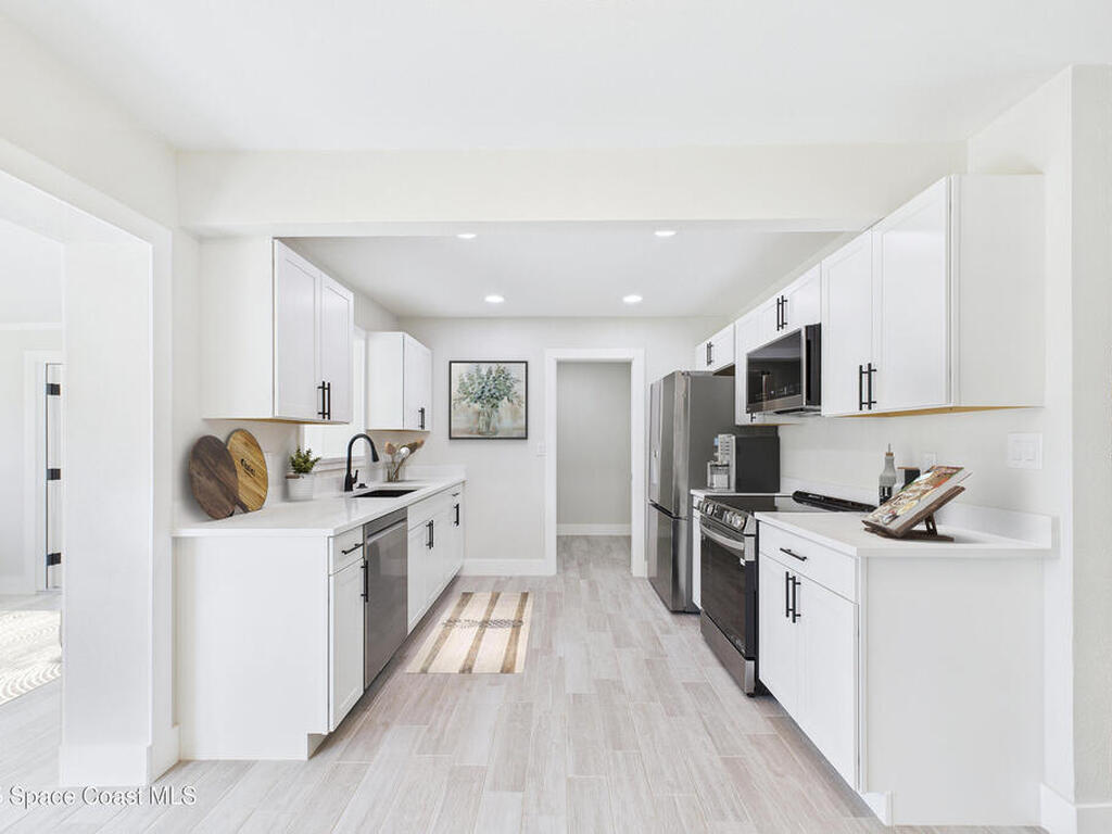 Step into this fully renovated and move-in ready home. This property offers 2 bedrooms plus a versatile bonus room that can easily be used as a third bedroom/office, or game room, providing flexibility to fit your lifestyle.Completely remodeled in 2025, this 1, 295 sq ft home features a new roof, impact windows with roller shutters, updated HVAC with new ductwork, and upgraded electrical panels, all fully permitted through the City of Melbourne, offering peace of mind and confidence in the quality of the work completed.The brand new kitchen is a standout with quartz countertops, modern cabinetry, and stainless steel appliances, spacious laundry room equipped with a new water heater, washer, and dryer. Additional upgrades include tile flooring throughout, interior and exterior paint, updated gutters, and a screened porch perfect for relaxing. full fanced backyardand covered carport. Homes renovated to this standard are hard to find. Schedule a showing and see it!