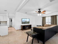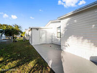 Turn Key! Updated 2BR/2 full-bath manufactured home located in an amenity-rich community offering golf, multiple pools, clubhouse activities, and private beach access. Move in ready with a new metal roof (2025), aluminum hurricane shutters w/ clear panels, and fresh interior and exterior paint. Features include luxury vinyl plank and ceramic tile flooring throughout, a renovated primary bath (2025) with walk-in shower, and an updated guest bath. Kitchen upgrades include new countertops, stainless steel farmhouse sink, pantry shelving, and appliances updated in 2019. Additional features include Hunter ceiling fans, new blinds, and a large screened porch with ceiling fan and electric. Exterior improvements include an extra-wide painted driveway, new concrete walkways, and new stucco on half the home. Property includes a10x12 utility room and an11x16 insulated, air-conditioned workshop with stacked washer/dryer, both with new vinyl siding & plywood sheathing. AC/heat pump replaced 2020.