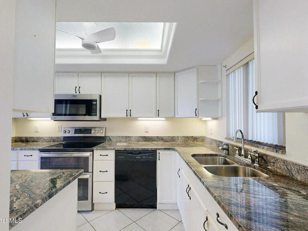Navigable BANANA RIVER! This complex overlooks the Thousand Island Preserve! Enjoy AMAZING sunsets from your balcony. Beautiful 2 story end unit with 2 bedrooms on the upper level. Granite and stainless steel appliances in this spacious kitchen. Amenities GALORE! Heated riverside pool, clubhouse, boat slips, boat launch and 725 foot boat dock. Storage and private garage. A MUST SEE! A tropical paradise! 3 month min -rental Garage far right in front of unit. New Roof in Jan 2026.