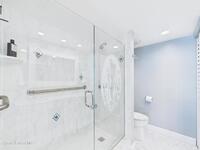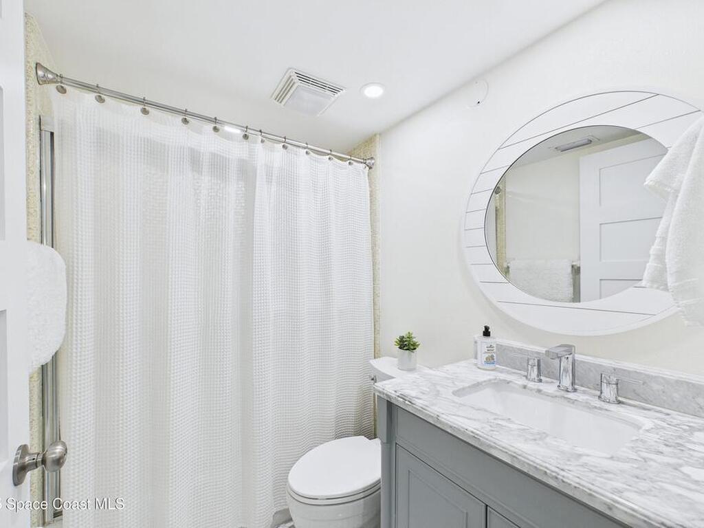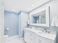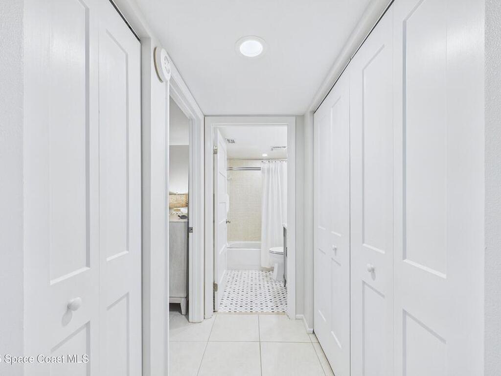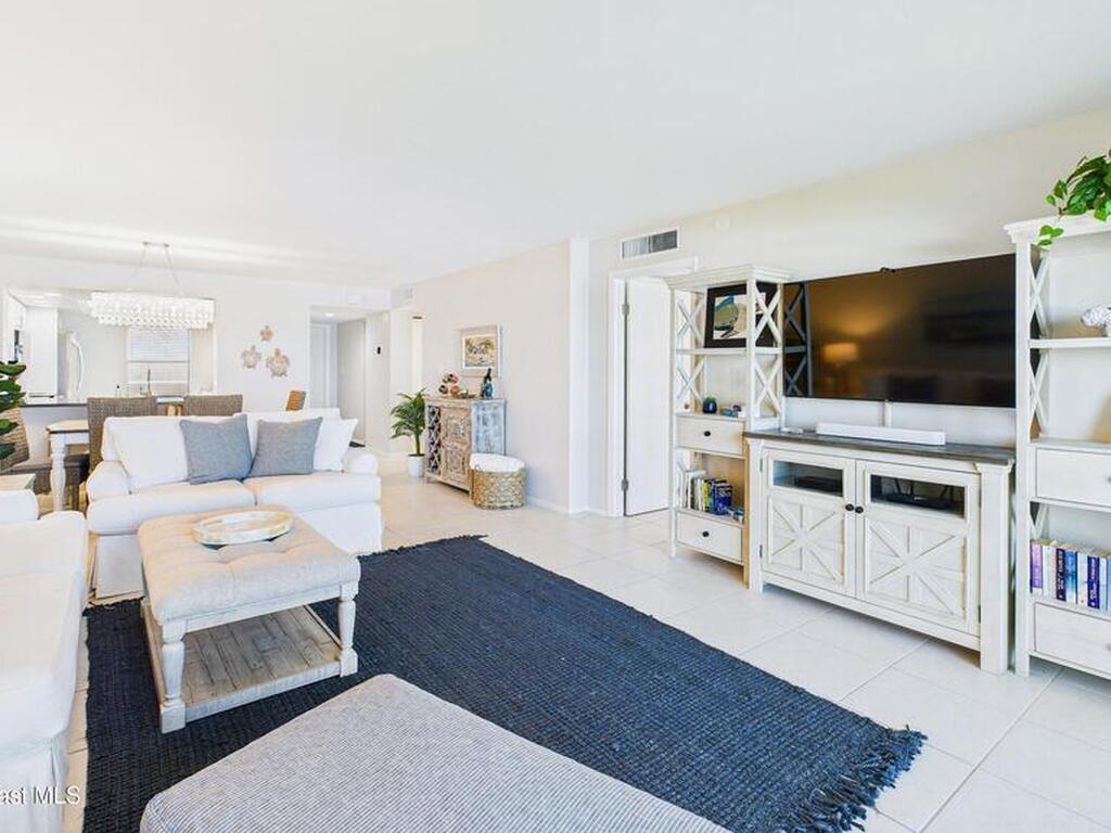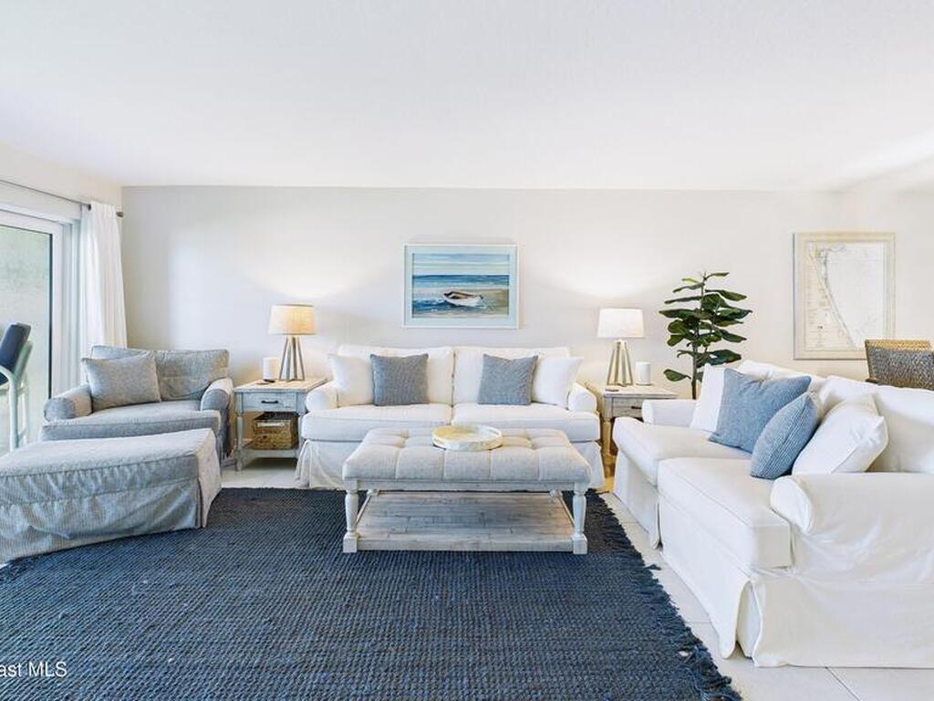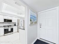 Enjoy oceanfront living with private beach access in this fully renovated 2 bedroom, 2 bathroom condominium at the Commodore Club in Indialantic. This third-floor residence features direct Atlantic views, impact-rated glass doors with turtle-safe tint, and in-unit laundry. The centerpiece is a custom kitchen layout with KraftMaid soft-close cabinetry, Silestone Charcoal Soapstone countertops, LG Smart stainless appliances, a coffee bar with built-in shelving, and a counter-height bar extension. The electrical panel was updated and relocated to create an open flow and feature wall. 2023-2024 upgrades include a new AC system, water heater, and bathroom renovations with granite vanities, new fixtures, and tile flooring. Fresh paint, resurfaced ceilings, updated lighting, ceiling fans, and custom window treatments complete this move-in ready coastal residence with access to a beachfront pool, showcasing quality craftsmanship and the Florida Space Coast lifestyle.