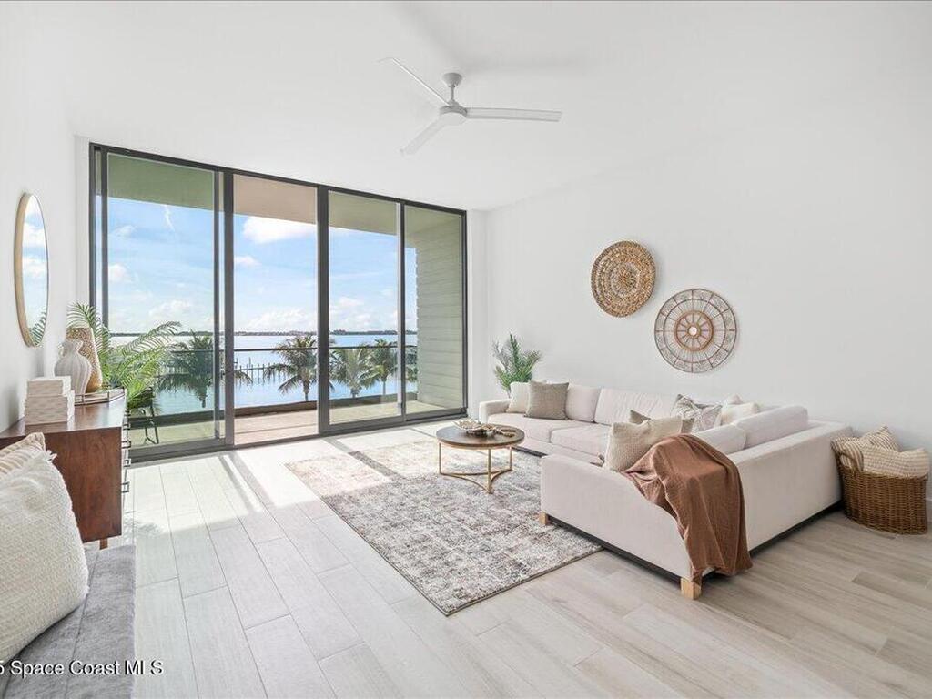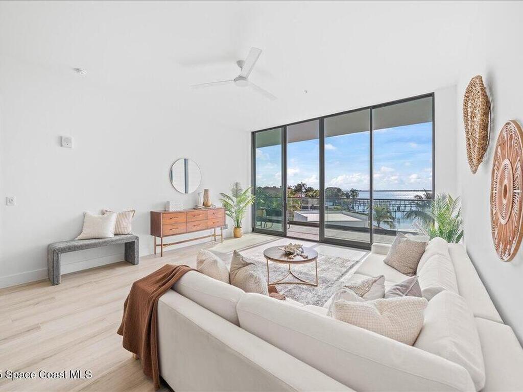 Immerse yourself in Melbourne Beach's premier private resort-style community, spanning from the Indian River Lagoon to the Atlantic Ocean. This meticulously crafted riverfront residence is built with a concrete superstructure, offering exceptional durability paired with tasteful coastal design. The third floor unit features elevated ceiling heights and a seamless open floor plan with three bedrooms, including a riverfront primary suite highlighted by floor-to-ceiling glass. Two luxurious en suites enhance the home's warm, welcoming, and expansive feel. Relax by the riverside pool cabanas or take a short stroll to the beach, where seasonal sea turtle hatchlings make their journey to the ocean. Residents enjoy an impressive array of amenities, including a marina, water sports rentals, and a beachside comfort station. Flexible rental options provide added versatility when not in residence. Experience refined coastal living at Harbor Island Beach Club.