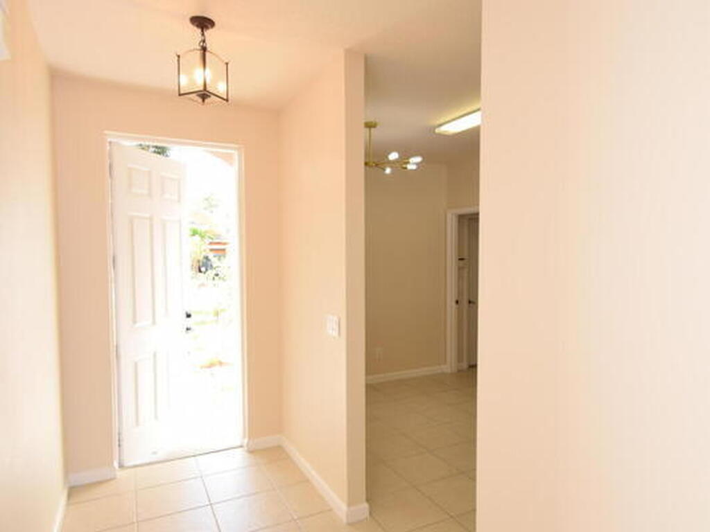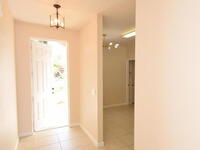 Welcome to your Lakefront Home! MOVE IN READY, this 3 bed 2 bath 2 car garage home with a large screened in porch overlooks a serene lake nestled in Eagle Lakes Subdivision. Enjoy an open floorplan with welcoming foyer, Kitchen with wood cabinets, stainless appliances, pantry, step up breakfast bar, pendant lighting, and breakfast nook area. The family room has a larger slider door for access to the screened porch. The split bedroom plan offers owners suite just off family room. Owners bath has a large soaking tub, separate shower, linen closet & large walk in closet. Other features: tile flooring and luxury vinyl plank flooring (no carpet), ceiling fans, 9ft ceilings, blinds, indoor laundry room, hurricane shutters, 2nd refrigerator in garage and linen closet by hall bathroom. City water and sewer with community sidewalks. ROOF permited 3-2024. HVAH permited 5/2018.