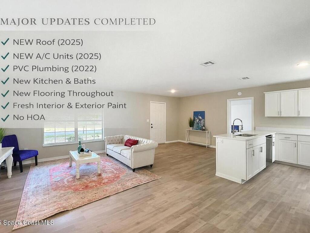 FULLY RENOVATED. MOVE-IN READY.NEW roof (2025). NEW A/C units (2025). New kitchen. New flooring. New tiled showers. Fresh interior and exterior paint. This fully updated 3-bedroom, 2-bath CONCRETE BLOCK HOME offers peace of mind with no HOA and thoughtful renovations throughout. Step inside to bright, welcoming spaces where natural light highlights the modern finishes and seamless flooring. The completely renovated kitchen sits at the heart of the home, perfect for everyday living and gathering. Both bathrooms have been refreshed with clean, modern tiled showers.Major systems have already been addressed, including newer electrical, newer windows, and a newer hot water heater. The home's plumbing was upgraded from cast iron to PVC in 2022, providing long-term reliability. Solid concrete block construction adds durability you can feel.Move-in ready and free from HOA restrictions, this home offers comfort, flexibility, and peace of mind for its next owner.