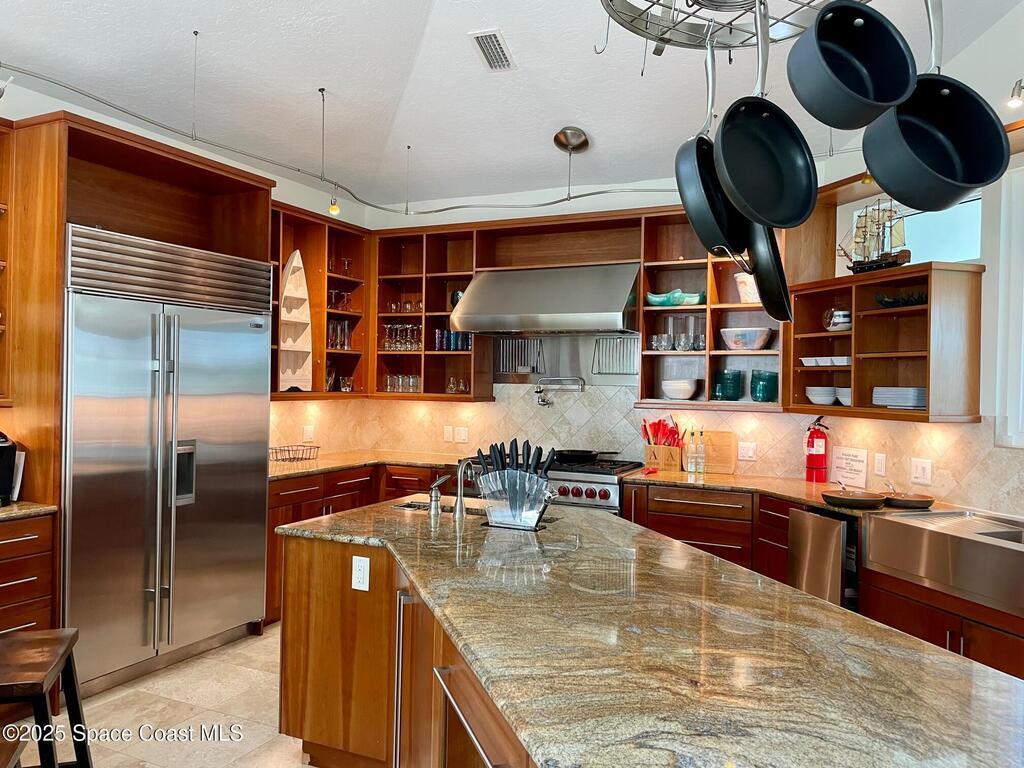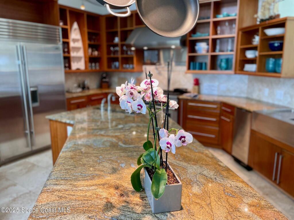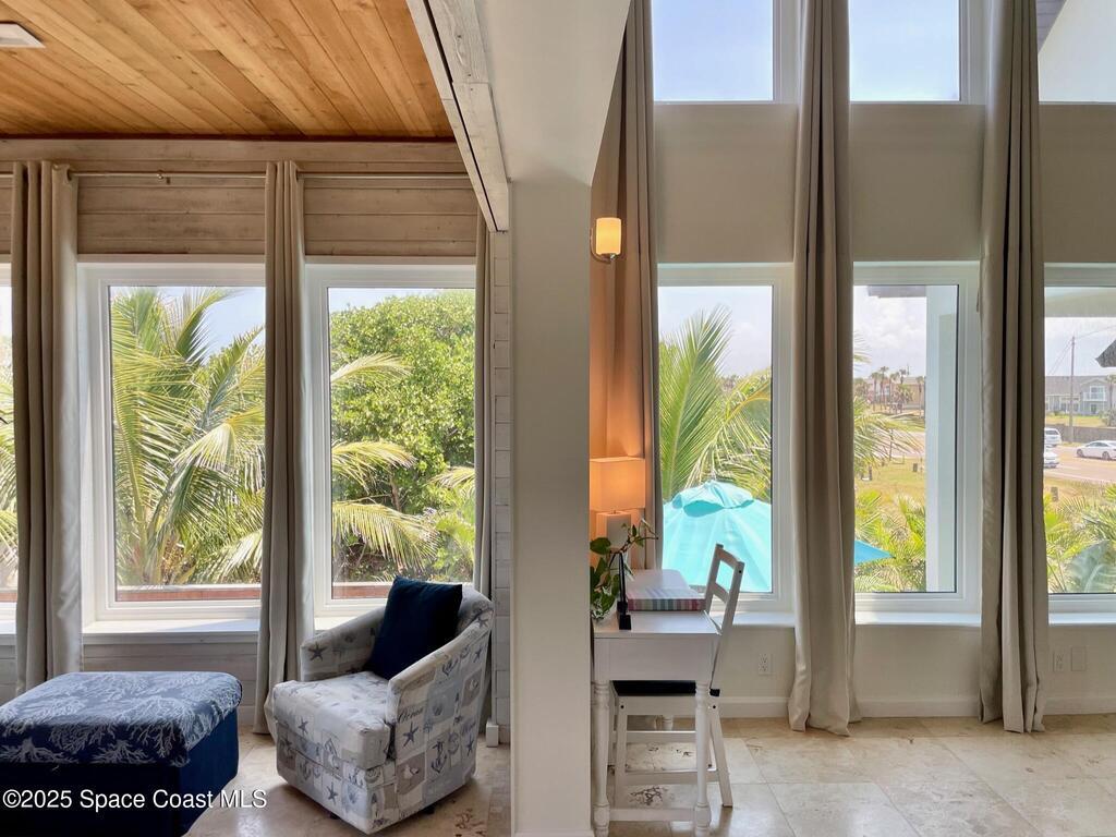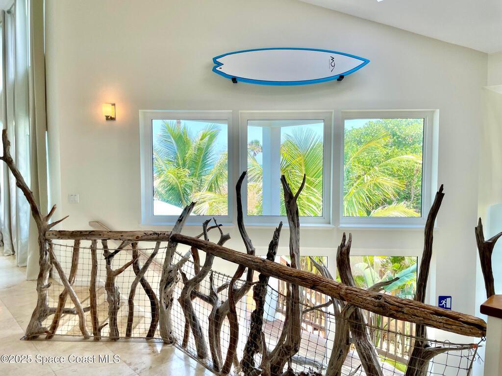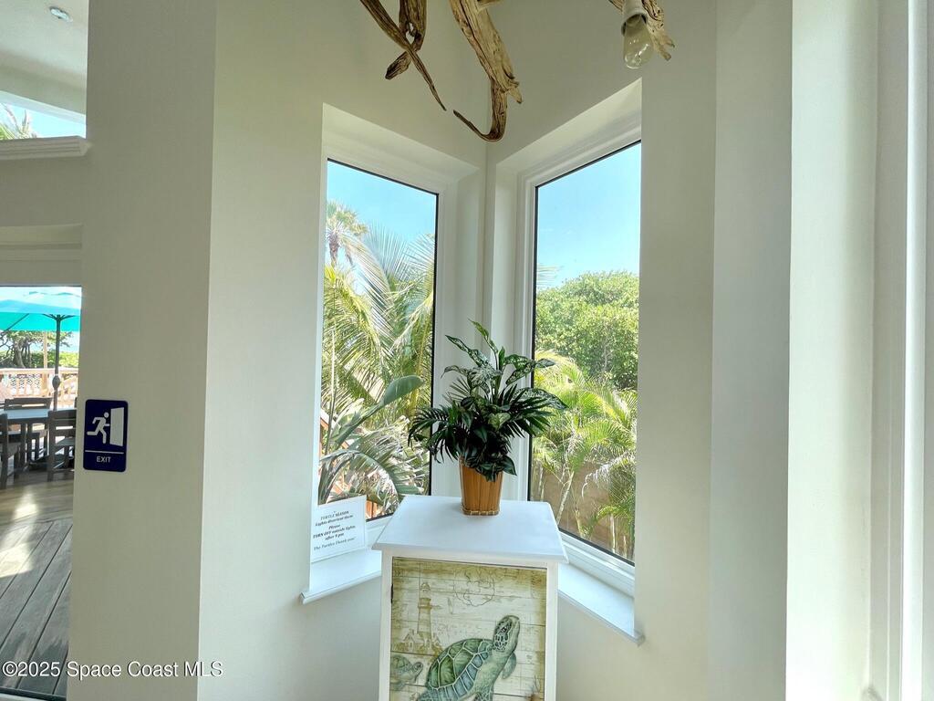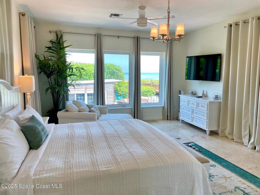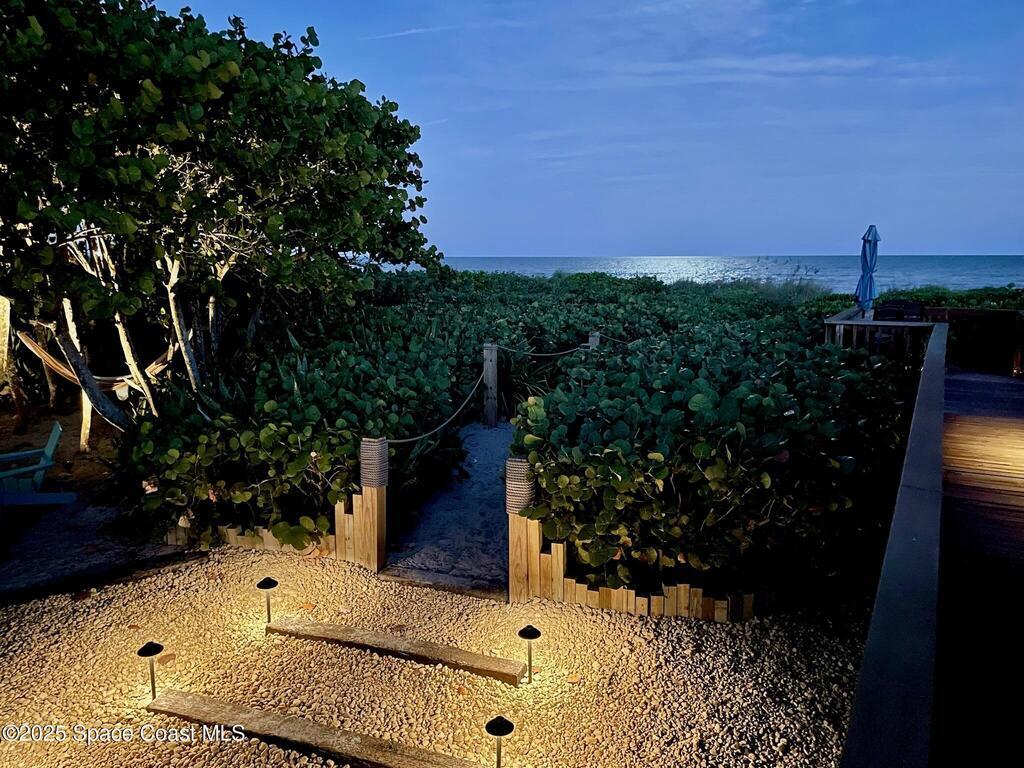 Experience coastal luxury in this exceptional direct oceanfront estate offering approx. 150 ft of private beach frontage. Set on a generous 12, 000+/- sq ft lot, this refined retreat features over 4, 000 sq ft of living space with 4 bedrooms and 3 baths, designed for both relaxation and entertaining. Three spacious patios with BBQ area create the ideal setting for gatherings, poolside lounging, or enjoying s'mores by the fire pit under the stars. Take in breathtaking sunrises, rocket launch views, and seasonal sea turtle hatchings from your own backyard. The first level includes a private mother-in-law suite with living area and wet bar, perfect for guests. Upstairs, floor-to-ceiling windows showcase sweeping ocean views. The gourmet kitchen is equipped with a Sub-Zero refrigerator, Wolf range with warming drawer, stainless steel appliances, and ample workspace. Additional features include dual split A/C, whole-home water softener, and generator. Live your best life in paradise every day.