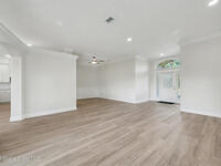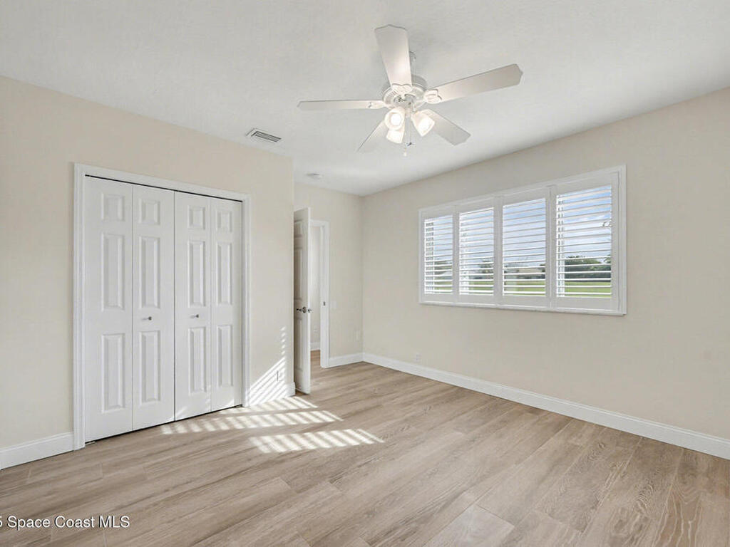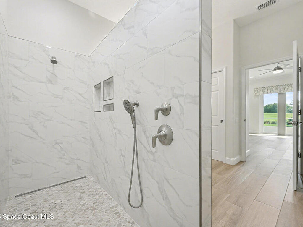 Welcome to an exceptional residence where refined luxury, comfort, and an active lifestyle come together in one of Suntree's most prestigious gated communities. Nestled within Baytree and overlooking the 4th hole of one of Florida's Top 75 golf courses, this stunning four-bedroom, three-bathroom home with a three-car garage offers an elevated living experience designed for those who appreciate quality craftsmanship, thoughtful upgrades, and timeless elegance.Built by one of Brevard County's most respected high-end builders, this home immediately impresses with its commanding presence and meticulous attention to detail. From the moment you step inside, you are greeted by an expansive open floor plan enhanced by soaring high ceilings that create a sense of grandeur and effortless flow. Natural light pours through impact-rated windows and sliding doors, illuminating the beautifully updated ceramic plank flooring that runs seamlessly throughout the entire home.