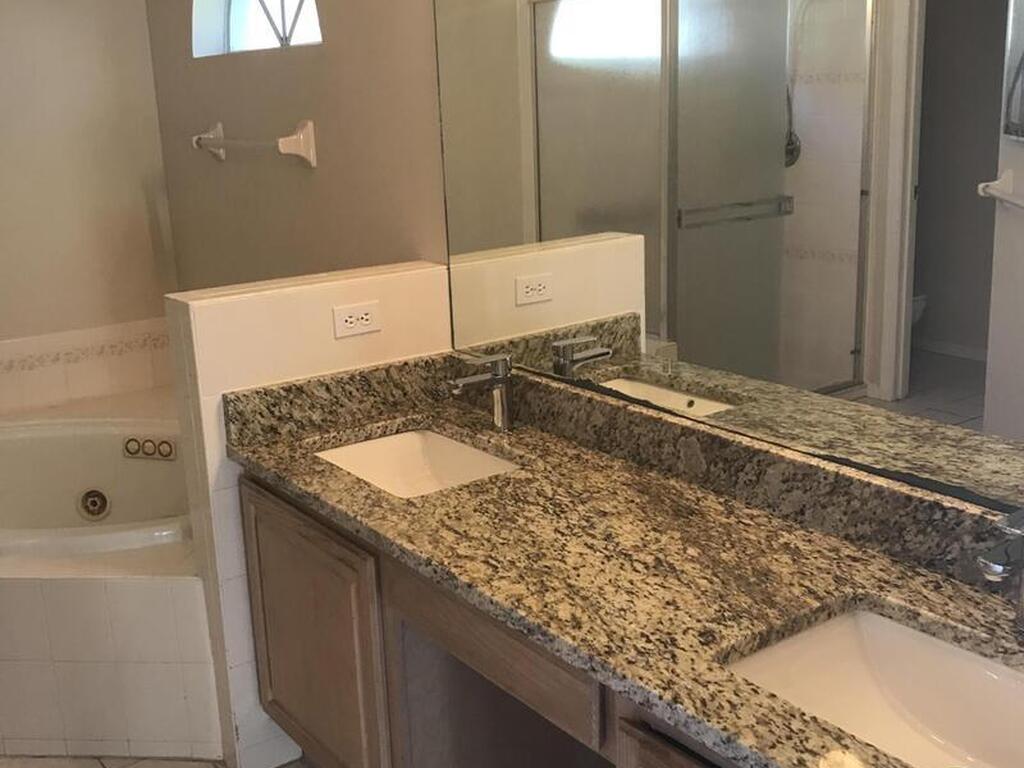 Spacious 4-Bedroom Home with Lake Views! This impressive four-bedroom home is conveniently located near shopping, schools, beaches & entertainment. Features include hardwood floors throughout with ceramic tile in the kitchen and bathrooms, a fully equipped kitchen, formal dining area, living room, and a huge bonus room.The expansive master suite offers a walk-in closet and a luxurious en-suite bath with a separate shower and garden Jacuzzi tub. Enjoy peaceful lake views from the large screened porch--perfect for morning coffee or evening unwinding.No pets.