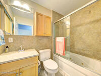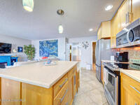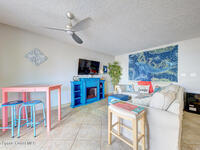 Enjoy the beach lifestyle in this beautiful first-floor condo featuring 1 bedroom and 2 full baths, including one with a jetted tub. The condo has been fully renovated with travertine tile throughout. The kitchen is a standout, featuring stainless steel appliances, cabinetry to the ceiling, and a movable island, perfect for both everyday living and entertaining. The spacious bedroom includes a brand-new AC unit. On-site laundry is conveniently located just steps from the unit. Perfectly located near Ron Jon Surf Shop in the highly desirable and quiet area of Ocean Beach Blvd, this condo is within walking distance to shops, dining, and everyday conveniences. Just a short ride to the port or downtown Cocoa Beach, where year-round events and activities await. Enjoy rocket launch views right outside your door, beachside festivals, and local favorites like Surfing Santas on Christmas Eve. Morning sunrise walks along the shore are truly unforgettable.