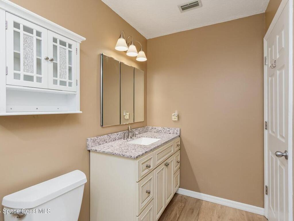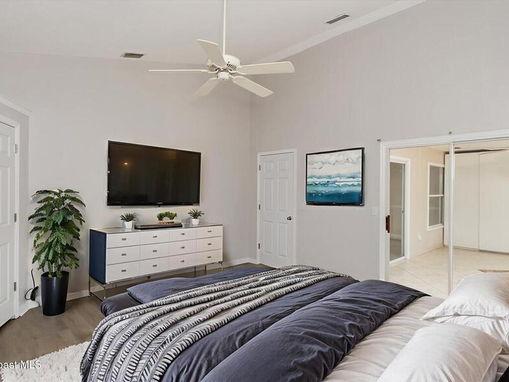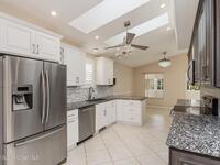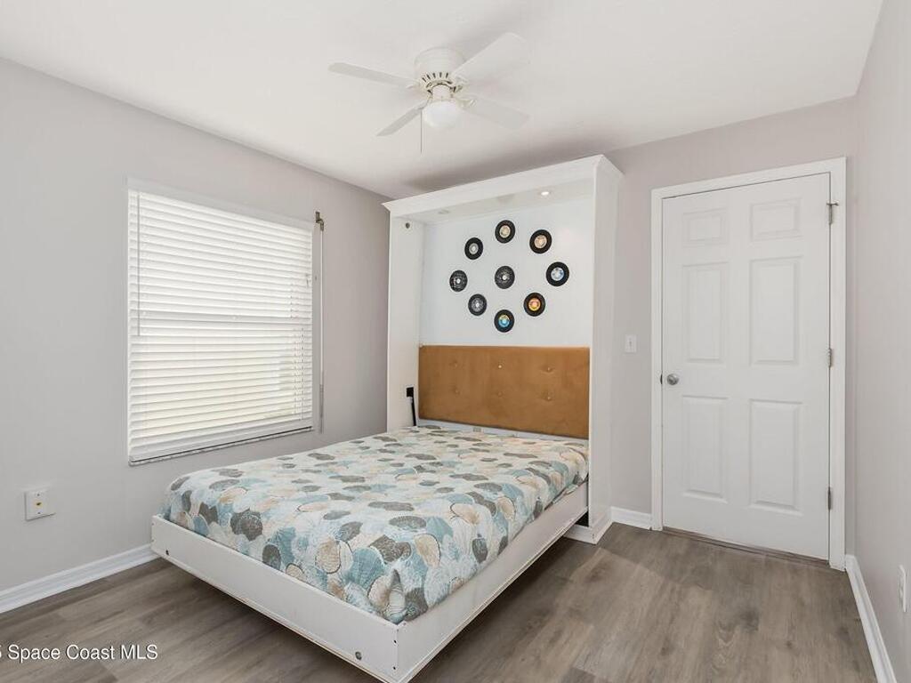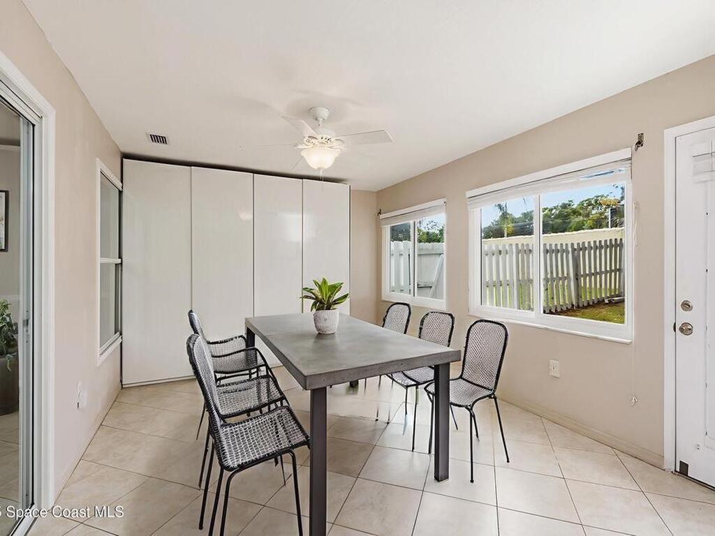 3b/2b Melbourne home w/2-car garage welcomes you into a front family room w/high ceilings that set an open, welcoming first impression. Kitchen sits just off family room & garage entry and is filled w/natural light from skylights. Designed for real use, it features soft-close drawers, pull-out shelving, built-in wine rack, a floor-level vacuum system & a bar counter that opens to the dining space -- perfect for casual meals or conversation while cooking. Enclosed patio extends the living space & includes floor-to-ceiling storage along one wall, ideal for hobbies or extra organization. Primary suite is privately located off family room w/patio access, step-in shower, large walk-in closet & view of fully fenced backyard. Two spare bedrooms share a full bath w/tub/shower combo & one offers a built-in Murphy bed. Out back, a patio creates space for grilling, relaxing or soaking up the sun. Ceiling fans throughout add comfort. Schedule your showing & see how this home fits your next chapter