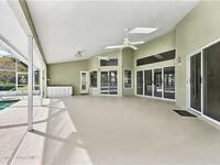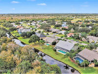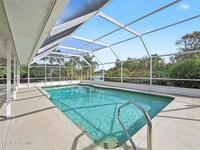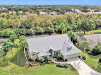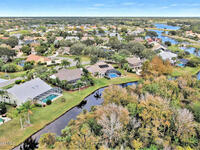 A hidden gem in Spanish Wells! You are welcomed into this delightful, meticulous home with a captivating view! The living/flex room opens to a huge lanai with water views and a protected preserve beyond. Flexible floorplan includes 4 bedrooms (1 makes a great office!) & 2 1/2 baths, living & dining rooms plus spacious family room off the kitchen. Relax and enjoy the crowning jewel... the extended screened lanai.... including large pool, spacious covered area with skylights and fans & summer kitchen..... all overlooking the peaceful view! Take the kayaks around the bend, past the gazebo to view the bald eagle nest! The extra features continue with large primary bedroom with 2 large closets and easy access to fully finished extra airconditioned storage, BRAND NEW ROOF, oversized garage (big enough for 2 cars & golf cart!) Located in this charming community of custom homes with easy access to Suntree Country Club, beaches and all the Suntree & Viera have to offer.