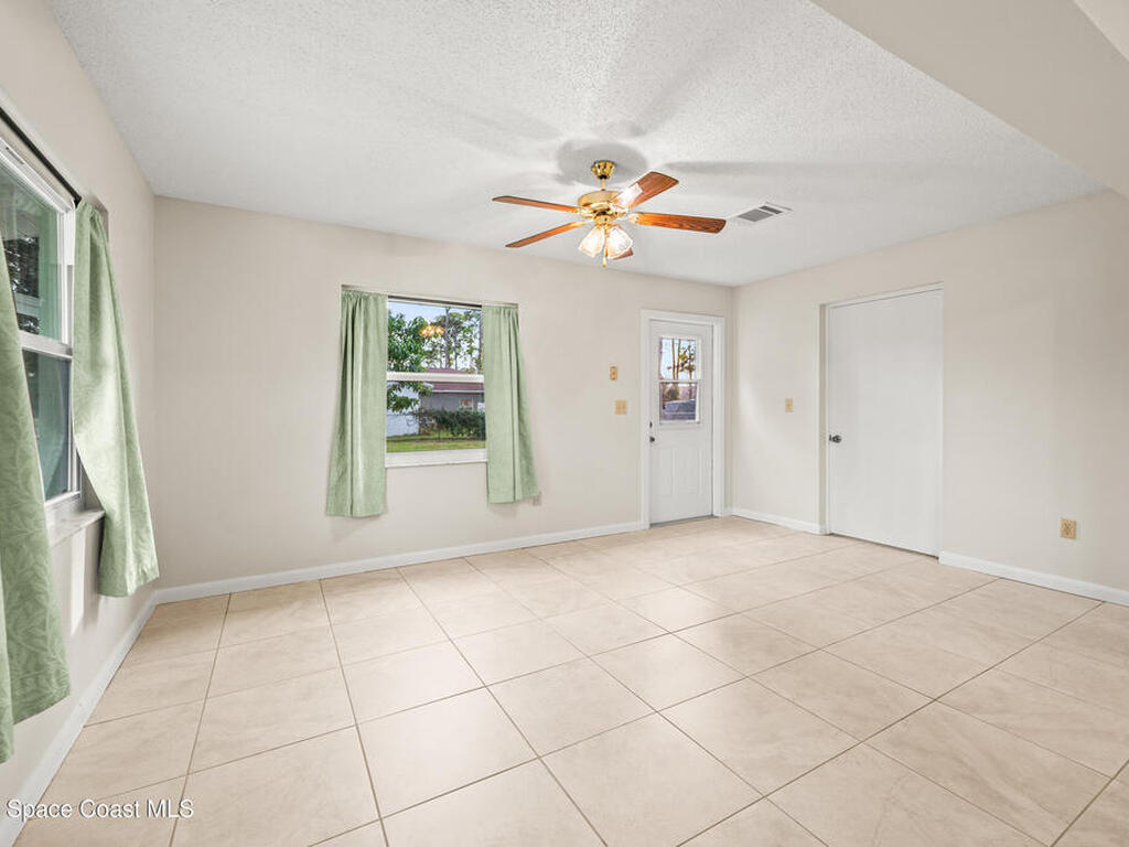 Welcome home to this beautifully maintained 4-Bedroom, 2-Bath concrete block home, with thoughtful upgrades throughout and room to grow. Fresh interior and exterior paint, hurricane impact-rated double-pane windows, and a new patio. The expansive open floor plan flows between living and family rooms and a spacious eat-in kitchen--ideal for everyday living and entertaining. A versatile flex room offers endless possibilities as a home office, playroom, or potential 5th bedroom. You'll also appreciate the laundry/utility room, abundant storage, and functional layout.Situated on a large corner lot, this property offers ample space to add a garage, store your RV or boat, or create your dream garden. Enjoy front-row seats to rocket launches right from your yard! Conveniently located in Port St. John, with close proximity to Kennedy Space Center, nearby beaches, cruises at Port Canaveral, and easy access to I-95 and the ''Beach Line'' (528) for an easy Orlando commute.
