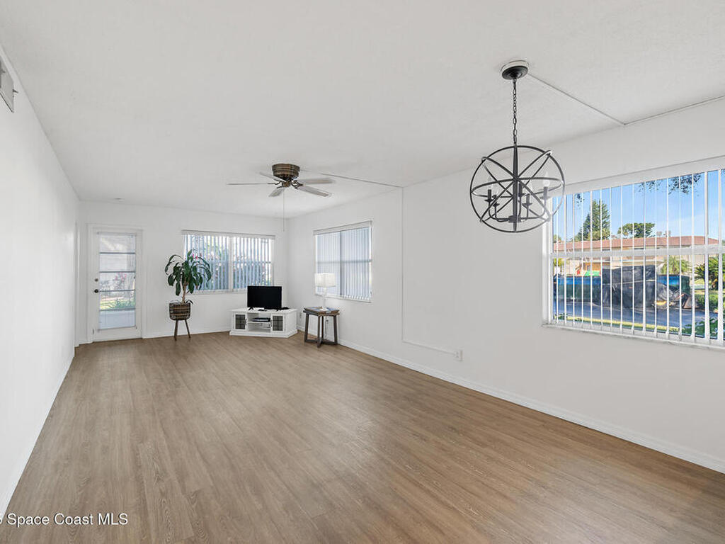 Welcome to this beautiful and spacious 2-bed, 2-bath first-floor condo in the highly desirable Cape Shores community in Cape Canaveral, nestled next to the Banana River. This light-filled unit offers an open floor plan, a newly renovated kitchen, and a relaxing enclosed sunroom--perfect for morning coffee, quiet evenings, or entertaining guests. The updated kitchen features stainless steel appliances, bright white cabinetry, modern fixtures and generous breakfast bar. Spacious open-concept living and dining areas create an inviting atmosphere. The primary bedroom includes an expansive walk-in closet, separate vanity, and walk-in shower, with sliders leading to a private screened patio. A guest bedroom and second full bath add convenience. Enjoy year-round comfort with a 2-year-old AC system. Enjoy year-round comfort with a 2-year-old AC system. Ideal as a full-time residence or vacation retreat, this home offers exceptional value. Don't miss this opportunity!