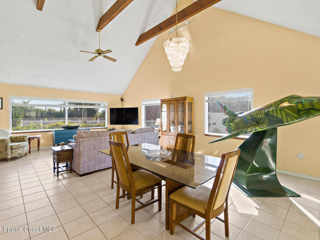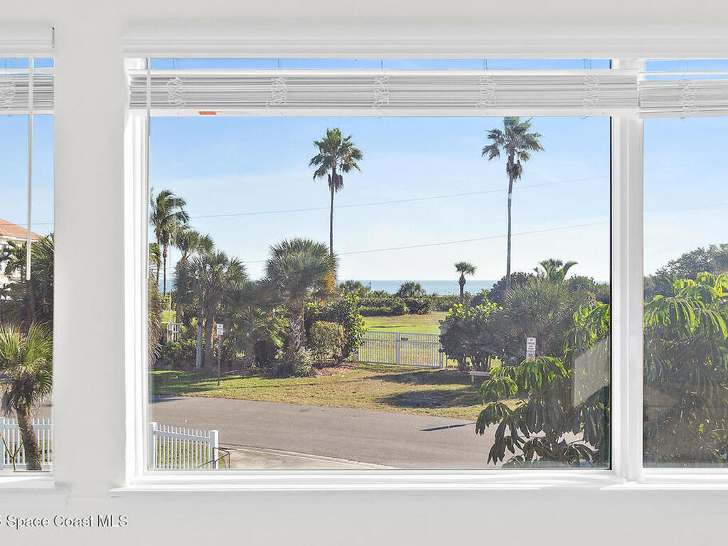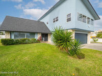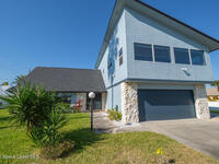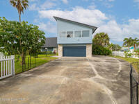 BEACH ACCESS! Nestled on the corner lot of a quiet cul-de-sac, this 3-bed, 2-bath, 2-story home offers direct beach access! OCEAN VIEWS from both floors, and a lush outdoor oasis with mango, lemon, and banana trees. The interior boasts an open floor plan, with tile floors throughout the living areas, carpeted bedrooms, a spacious kitchen and large upstairs room offering ocean views. With RV parking, a 2-car garage IMPACT DOORS & WINDOWS, sprinkler and security systems, new AC and water heater (2 years), and roof (3 years), this freshly painted HOME is built for comfort and peace of mind. Allowing short-term rental potential, with NO HOA. Minutes from Ron Jon Surf Shop, Cocoa Beach Pier, and 1 mile to Port Canaveral's dining, entertainment and cruise terminal. It's ideal for permanent living, vacation getaways, or an income property. This home offers coastal charm and a front-row seat to the beach, amazing rocket launches, and STUNNING SUNRISES! Your coastal paradise awaits.