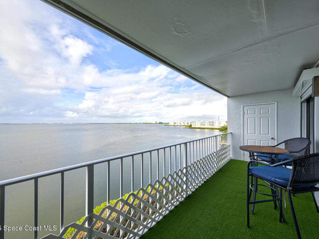 Experience waterfront living in this stunning top-floor sanctuary. Large balcony with panoramic views of the shimmering river, this 2-bedroom, 2-bathroom condo comes fully furnished & has been meticulously reimagined with modern elegance in mind. The open-concept living space is bathed in natural light, drawing your eyes immediately to the water through floor-to-ceiling vistas. The chef-inspired kitchen features premium finishes and seamless updates that flow into the dining and living areas--perfect for hosting sunset cocktails. Both bedrooms serve as private retreats, with the primary suite which includes a private bath and direct access to the sights and sounds of the river. Every inch of this home has been updated, ensuring a turnkey lifestyle for the discerning buyer. Amenities include pool and pickle ball courts. Convenient Cocoa Beach Location.