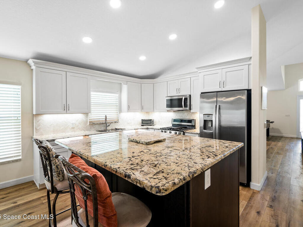 Located within a highly coveted 55+ gated community, this exceptional home offers the perfect balance of privacy and a welcoming, close-knit lifestyle. Thoughtfully transformed with over $100, 000 in updates, it truly shows like new construction - because nearly everything is new. Enjoy serene water views with a preserve backdrop, providing rare, tranquil privacy. Inside, all-new luxury vinyl plank flooring flows throughout. The stunning kitchen features gorgeous new cabinetry with crown molding, highest-grade granite countertops, an expanded center island, and brand-new appliances. The owner's suite is a true retreat with a new granite-topped double sink vanity, expanded zero-entry shower, and updated soaking tub. A split floor plan offers a private hallway leading to two guest bedrooms and a beautifully updated guest bath. Major improvements include all new double-pane windows (2022), new HVAC (2023), impact garage door (2020), roof replacement (2018), new ceiling fans, new lighting,