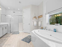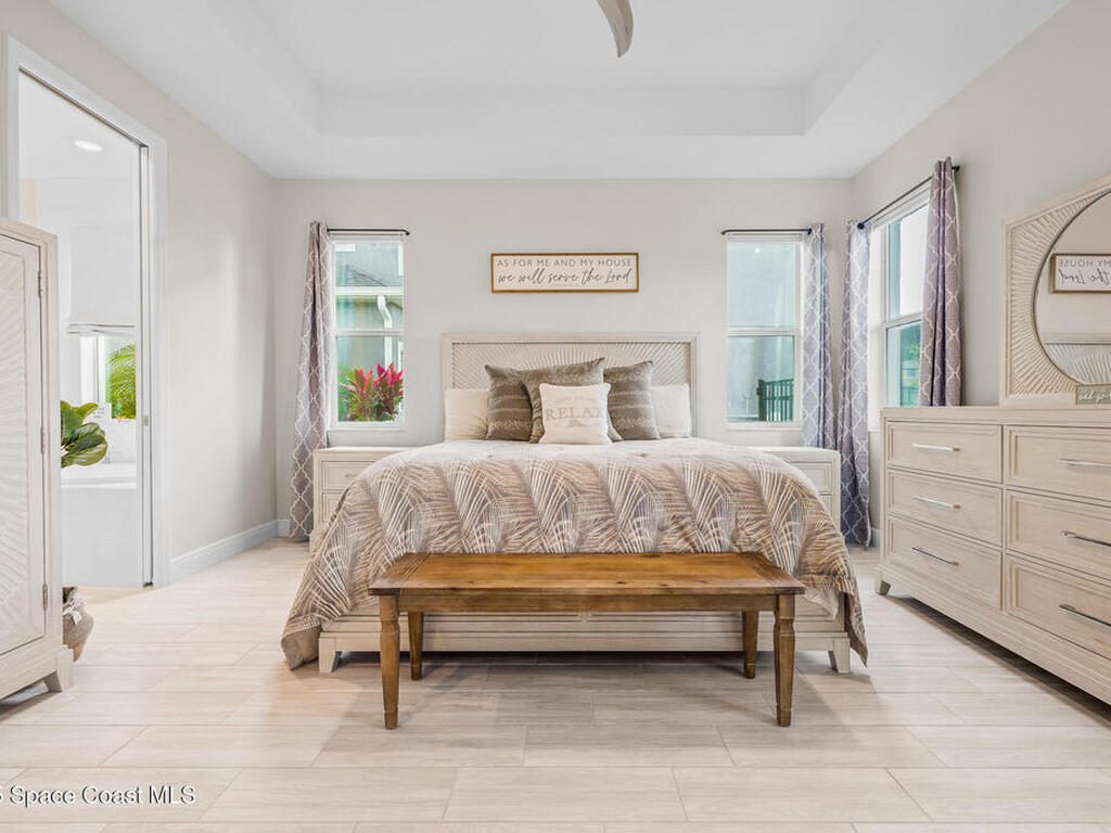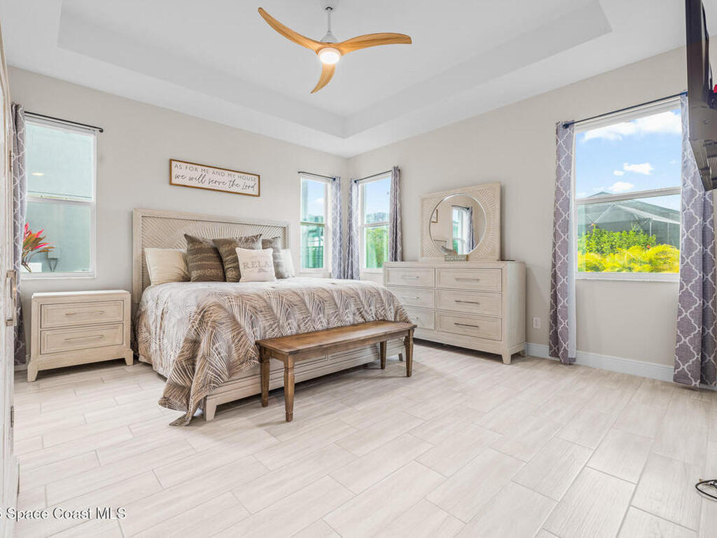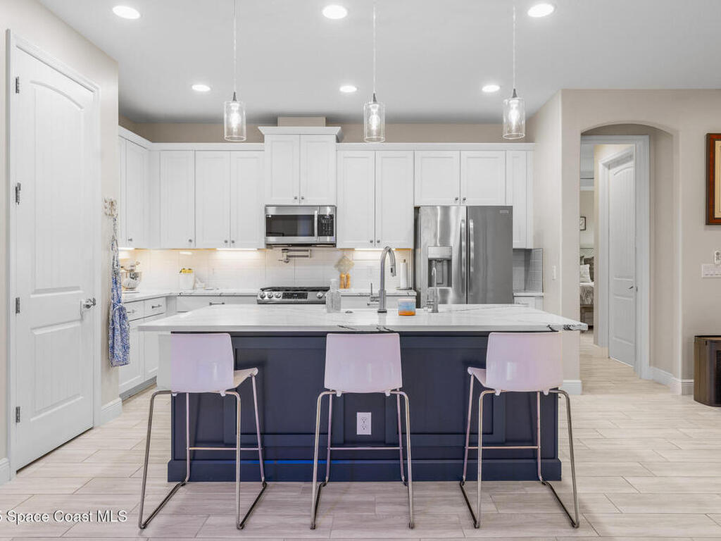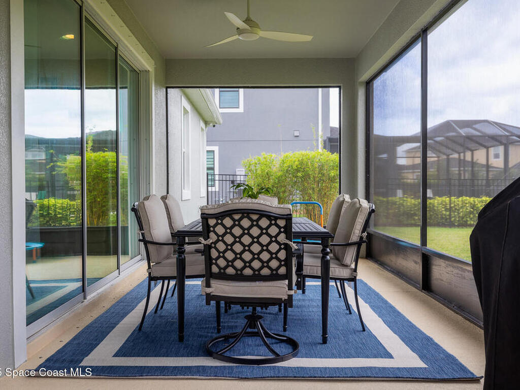Step into refined modern living in this impeccably maintained 2023-built 4-bedroom, 3.5-bath residence located in the highly desirable Sendero Cove. Thoughtfully updated and move-in ready, the bright, open layout features 8-foot doors, wood-look tile flooring, brand-new custom window treatments, and a fresh full interior paint completed in July.The chef's kitchen is a standout, showcasing quartz countertops, a tile backsplash, stainless steel appliances, a gas range with pot filler, and an oversized island--ideal for entertaining and everyday gatherings. The luxurious primary suite offers a private retreat with a tray ceiling, dual walk-in closets, and a spa-inspired bath complete with double vanities, a soaking tub, and a spacious walk-in shower.Guests will appreciate the privacy of their own ensuite bedroom. Triple sliding glass doors open to an expansive L-shaped screened lanai with three ceiling fans and pre-plumbing for gas, electric, and water--perfectly set up