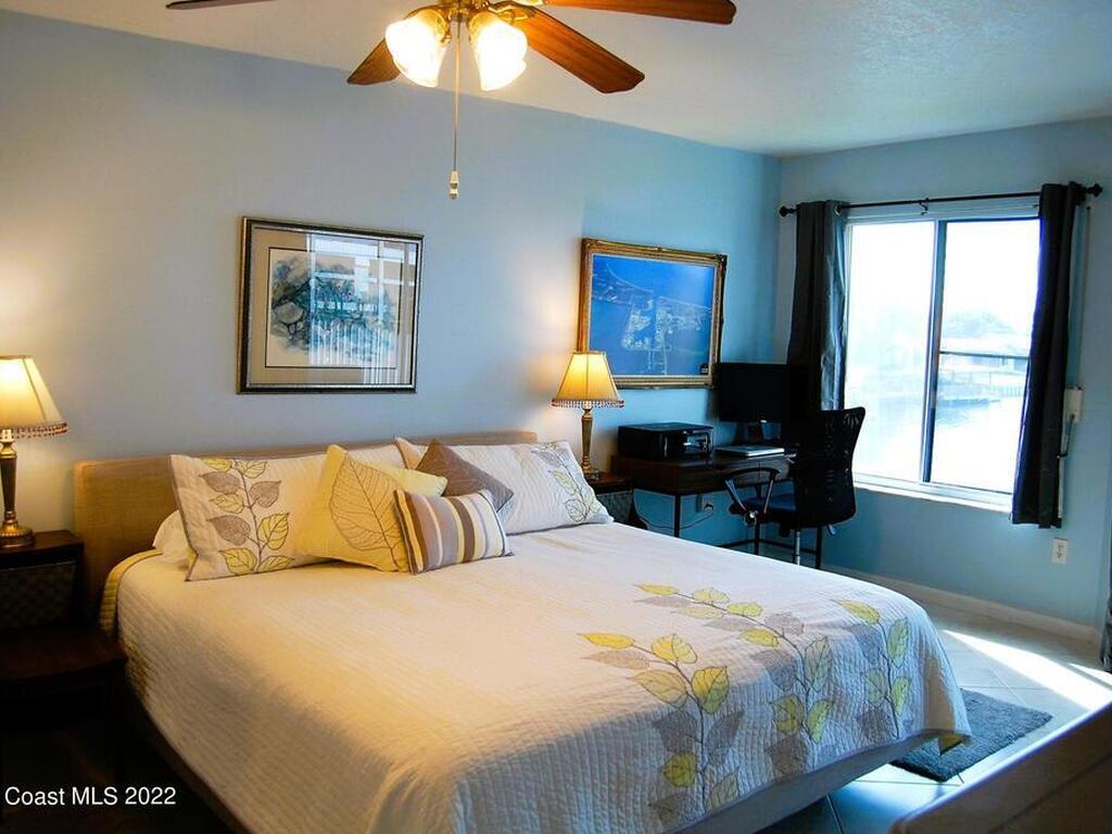 Welcome to The Commodore in beautiful Cocoa Beach! This 2 BR/2BA waterfront corner unit has direct westerly views for amazing sunsets and a pool/hot tub view. Fully Furnished with a well-equipped kitchen for eating in or entertaining. Workstation in the primary suite includes desk, chair, monitor and printer. Includes: water, garbage, internet & 2 Cable boxes (3 tv's), secure entry, shuffle board, tennis court, fishing pier with kayak launch (2 kayaks available for tenant use). Conveniently located. Walk to grocery store, restaraunts and pub. Short walk to public beach access via Lori Wilson Park or Sydney Fischer Park. Just 1.5 miles to downtown CB where you will find many restaurants, shops, and bars with live music. Water, Cable & WIFI Included. Seasonal Rate is $4200/mo - 3 month minimum.