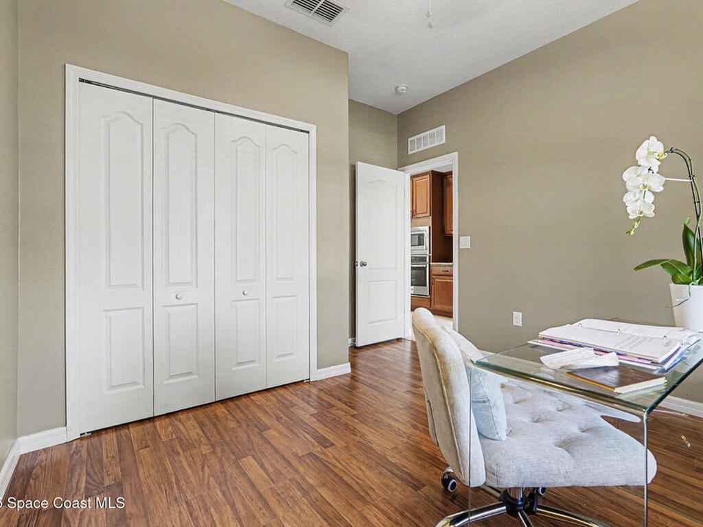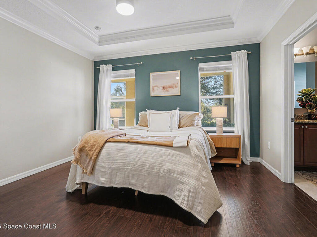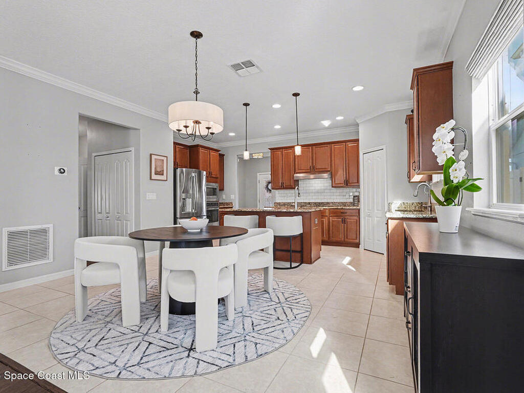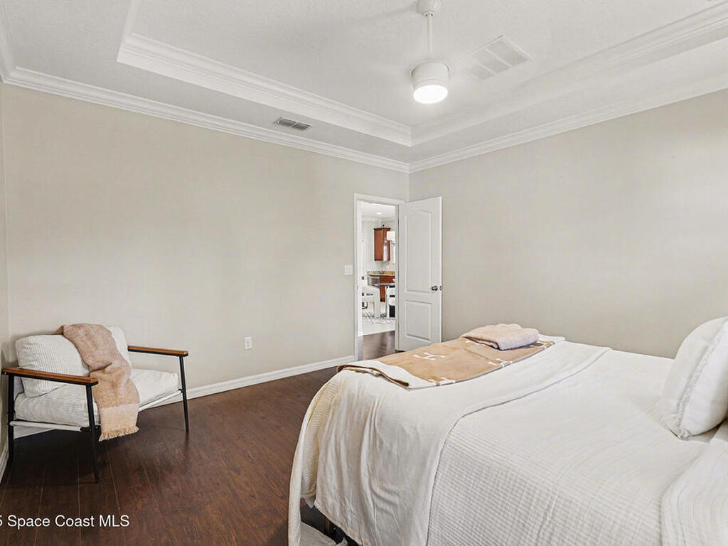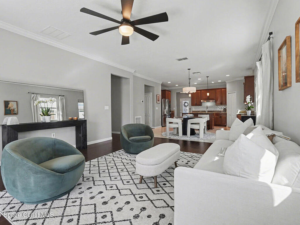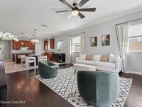 Welcome home to this beautifully upgraded 4-bedroom, 2-bath residence offering 1, 713 sq. ft. of comfortable living space in desirable West Melbourne. This well-maintained home features 9+ ft ceilings, elegant crown molding, and stylish laminate flooring, creating a bright and inviting atmosphere. The spacious chef's kitchen is perfect for entertaining and everyday living, complete with granite countertops, bullnose corners, modern finishes, and a new dishwasher (2024). Major updates include a new roof and garage door (2023) for added peace of mind. Enjoy Florida living year-round on the expansive 1030 screened porch, overlooking a preservation area with no rear neighbors, offering exceptional privacy. Additional features include smart switches and an electric car charger. Conveniently located near shopping, dining, parks, major roadways, and A+ schools, this move-in-ready home offers comfort, privacy, and convenience.