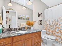 Beautifully remodeled four-bedroom, three-bath home situated on a desirable corner lot with stunning river views and gorgeous landscaping. This thoughtfully designed home features two primary suites, each with its own full bath--perfect for guests or multigenerational living. The great room boasts vaulted ceilings, recessed lighting, and a striking electric fireplace with shiplap detail and custom shelving. The updated kitchen offers an island, breakfast nook, pendant lighting, and upgraded cabinetry with pull-out shelving for added convenience. Plantation shutters throughout enhance both style and privacy. The main primary bath features a walk-in shower, while the guest bath includes a walk-in bathtub. Enjoy peaceful mornings on the front porch overlooking the river or relax in the beautifully landscaped yard with a paver patio and fire pit. Additional features include an inside utility room with sink and a whole-house generator. This exceptional home offers comfort and functionality.
