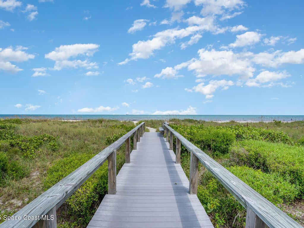 Incredible living or investment opportunity! This ground-level oceanfront condo just steps from the sand is already booked through March and boasts excellent VRBO ratings that can transfer with the property. Thoughtfully renovated to maximize functionality and comfort, this unit features Bluetooth-enabled lighting and music for effortless modern living. Offered fully furnished, this true turnkey oasis allows weekly rentals, making it ideal for both personal use and strong income potential. Enjoy rocket launches right from your front patio! Located in a very well-kept, gated, pet-friendly community, this property also features impact windows, a new pool coming, no assessments, and HOA fees include water, trash, and sewer, cable and Wi-Fi. Perfectly located near shopping, dining, and entertainment, this property delivers the ultimate beach lifestyle. Live here full-time, enjoy it as a second home, or capitalize on its proven vacation rental income. This is coastal living at its finest!