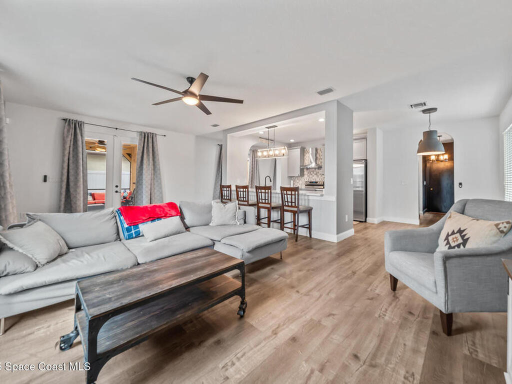 Welcome to 2783 Glen Ridge Circle in desirable Merritt Island! This beautifully maintained 4 bedroom, 3 bath home offers a spacious open floor plan designed for both everyday living and entertaining. The kitchen features stainless steel appliances, ample cabinetry, and flows seamlessly into the main living areas filled with natural light. Step outside to your private retreat with a screened-in porch sparkling pool, and peaceful lake views. perfect for relaxing or hosting guests. Additional highlights include a 2-car garage, generous bedroom sizes, and serene waterfront setting. Conveniently located near schools, shopping, dining, and beaches, this home combines comfort, style, and Florida living at its best.