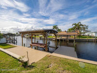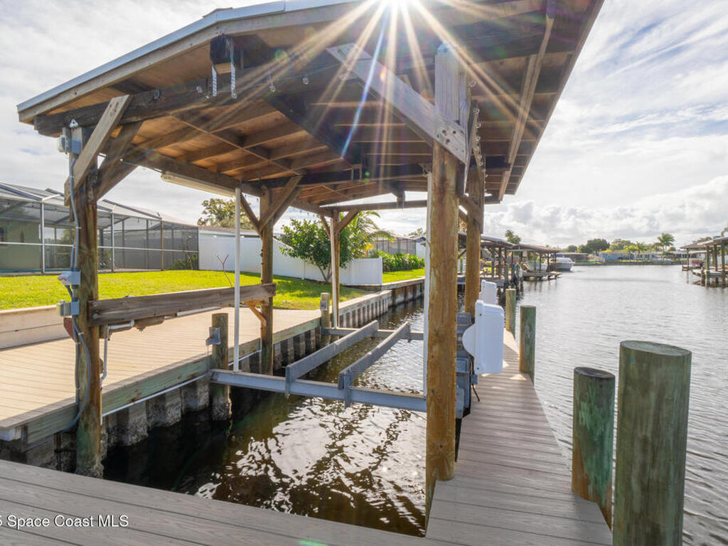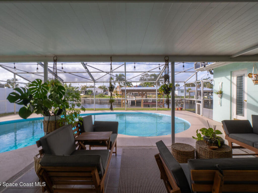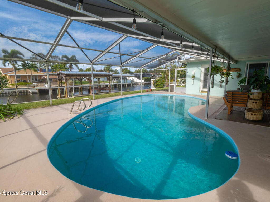 Located in the desirable Waterway Manor neighborhood of Merritt Island, this 3 bedroom, 2 bathroom canal-front pool home offers true Florida waterfront living with direct boating access. The property features a private boat dock and boathouse, ideal for boaters and water enthusiasts. Inside, the home offers a functional galley kitchen with granite countertops, tile flooring throughout most of the living areas, and LVP flooring in select rooms. The screened-in pool and patio create a comfortable outdoor living space overlooking the canal. Recent updates such as fresh paint inside and out, new AC compressor, and pool heater add value while maintaining a practical layout. Centrally located near schools, shopping, dining, beaches, Port Canaveral, and major roadways, this home combines location, boating lifestyle, and everyday convenience. A great opportunity for buyers seeking a waterfront home in Merritt Island with a pool and dock. Don't miss out, schedule a showing today!
