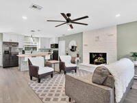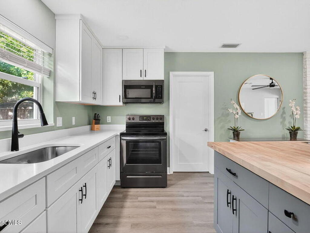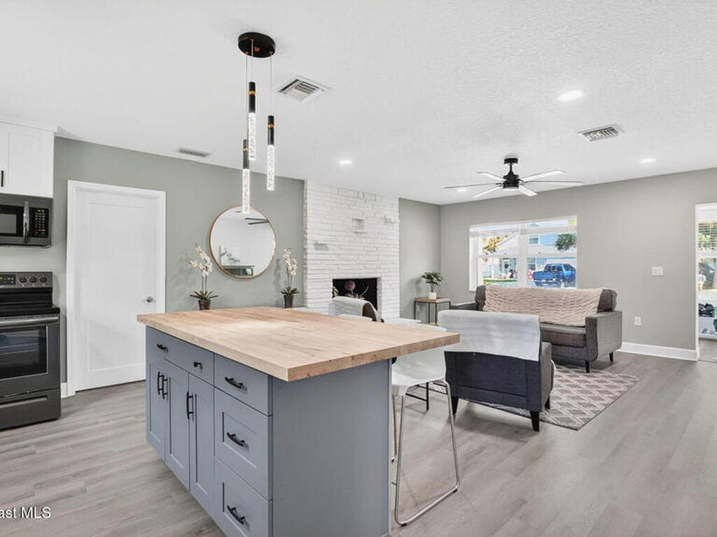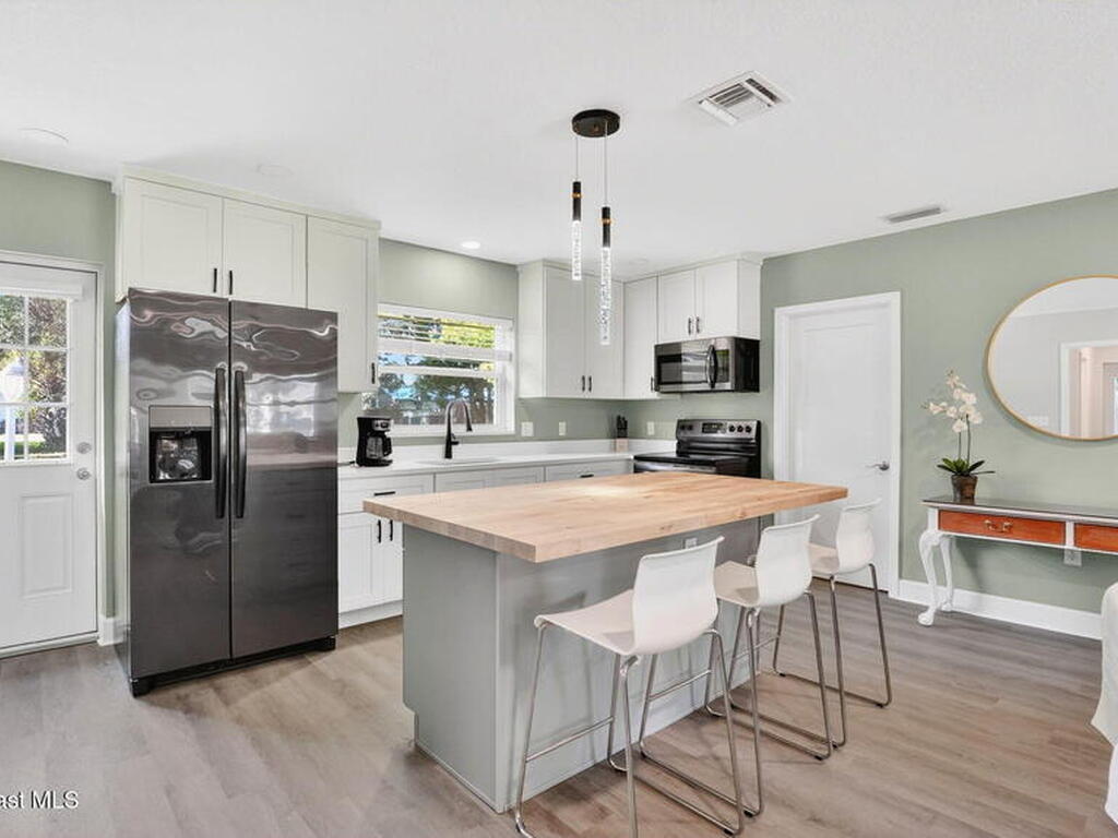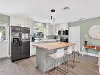 Welcome to this beautifully remodeled 3 bedroom, 2 bath home, updated in 2023 with luxury vinyl flooring throughout. As you walk in the front door, njoy a spacious under air sunroom that adds extra living space perfect for relaxing or entertaining year round.The kitchen is a true showstopper with striking two tone cabinetry, quartz countertops, and a butcher block island that is perfect for both everyday living and entertaining. The main bathroom is fully tiled with a clean, modern finish, and each bedroom offers comfortable space and abundant natural light.One of the home's most unique features is the private side suite, complete with a large bedroom, a mini kitchen nook, and a spacious bathroom. This flexible space is ideal for guests, multigenerational living, or additional income potential.