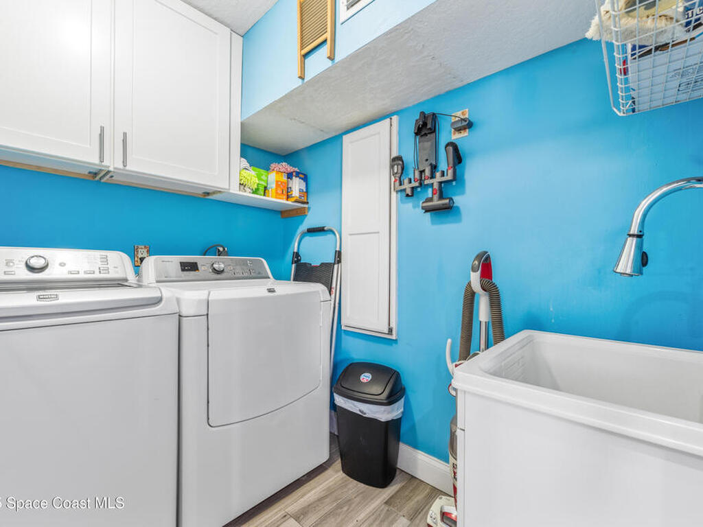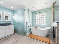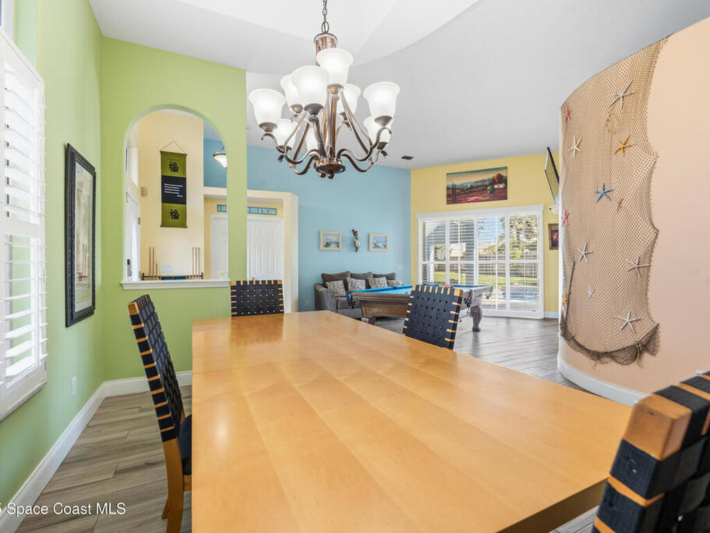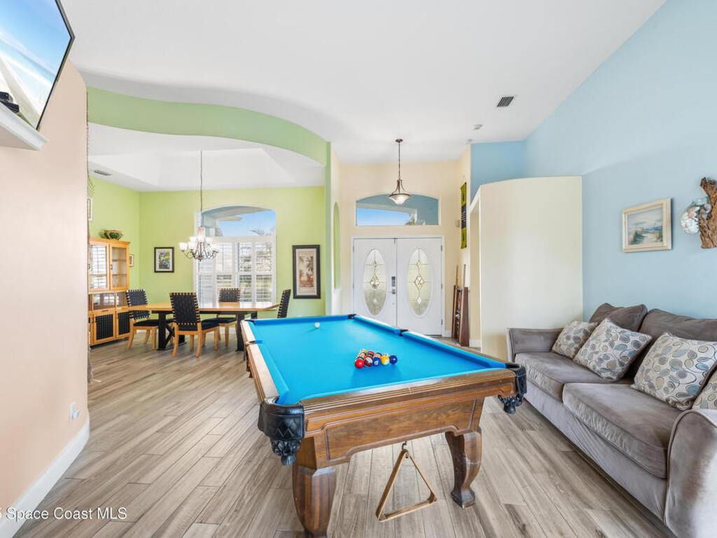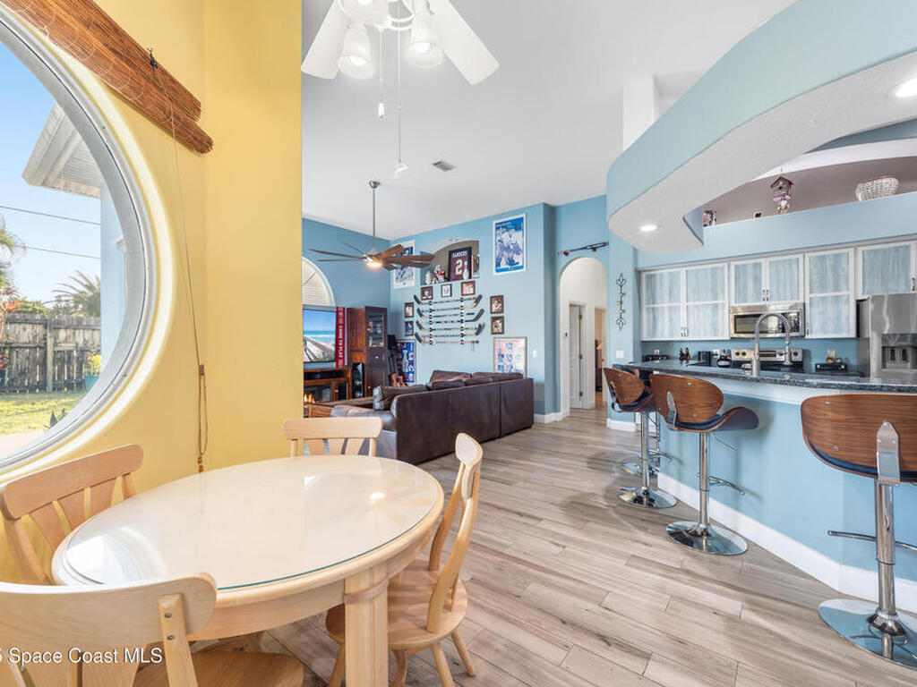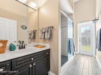 Tucked away at the end of a quiet cul-de-sac in the heart of Indialantic, 452 Veracruz Blvd offers rare privacy just steps from the beach. Set on a .32-acre lot, the oversized fenced backyard provides room for boat storage with permitted rear road right-of-way, while the Beach Street public beach access puts sunrise walks and surf sessions in quick reach. Major updates remove the guesswork, including a 2019 roof, a fully resurfaced and retiled pool completed in 2016, Pentair variable speed pool pump in 2024 and two HVAC systems installed in 2020, each with a 10-year warranty. Inside, gorgeous wood-look tile flooring and vaulted ceilings throughout create a bright, open feel. The floor plan features three bedrooms, dedicated office, an upstairs bonus room that can easily function as an additional bedroom, and two full bathrooms. The primary suite is a true retreat with a spa-style bath featuring a soaking tub, oversized walk-in shower, dual sinks, and a chic frosted-glass water closet.