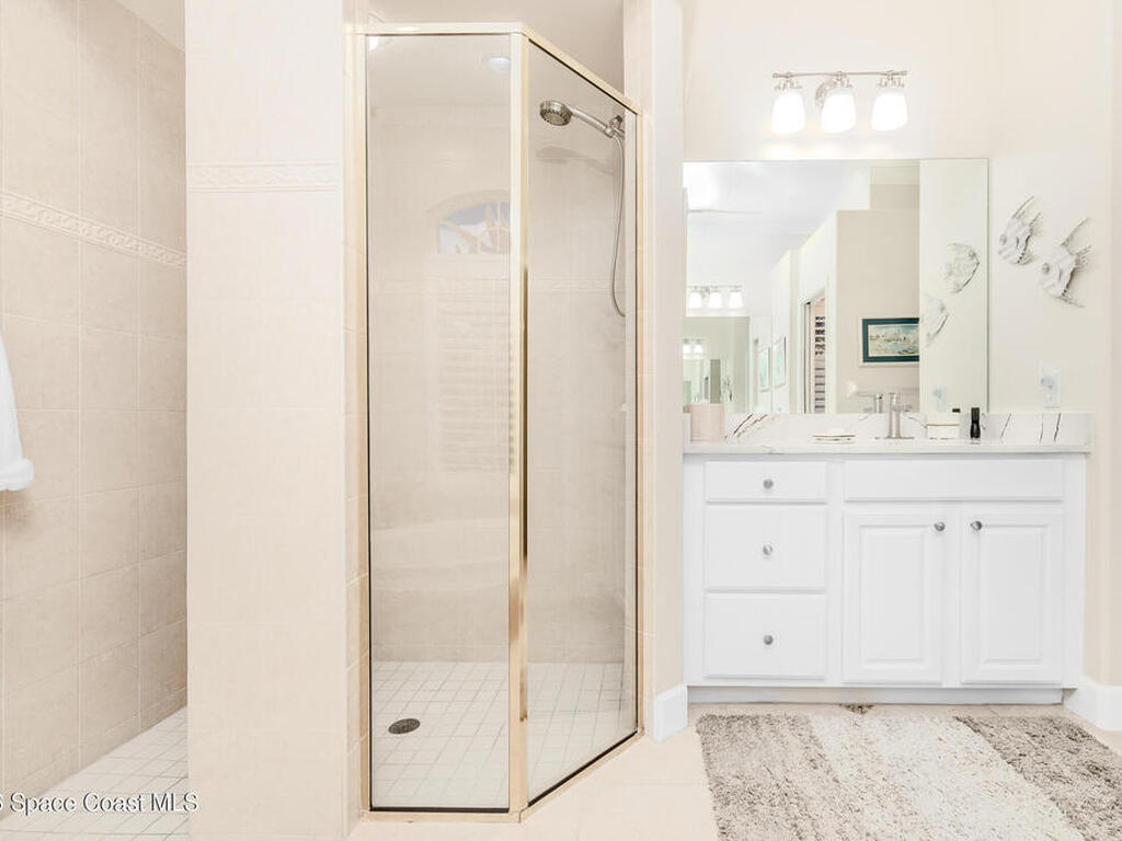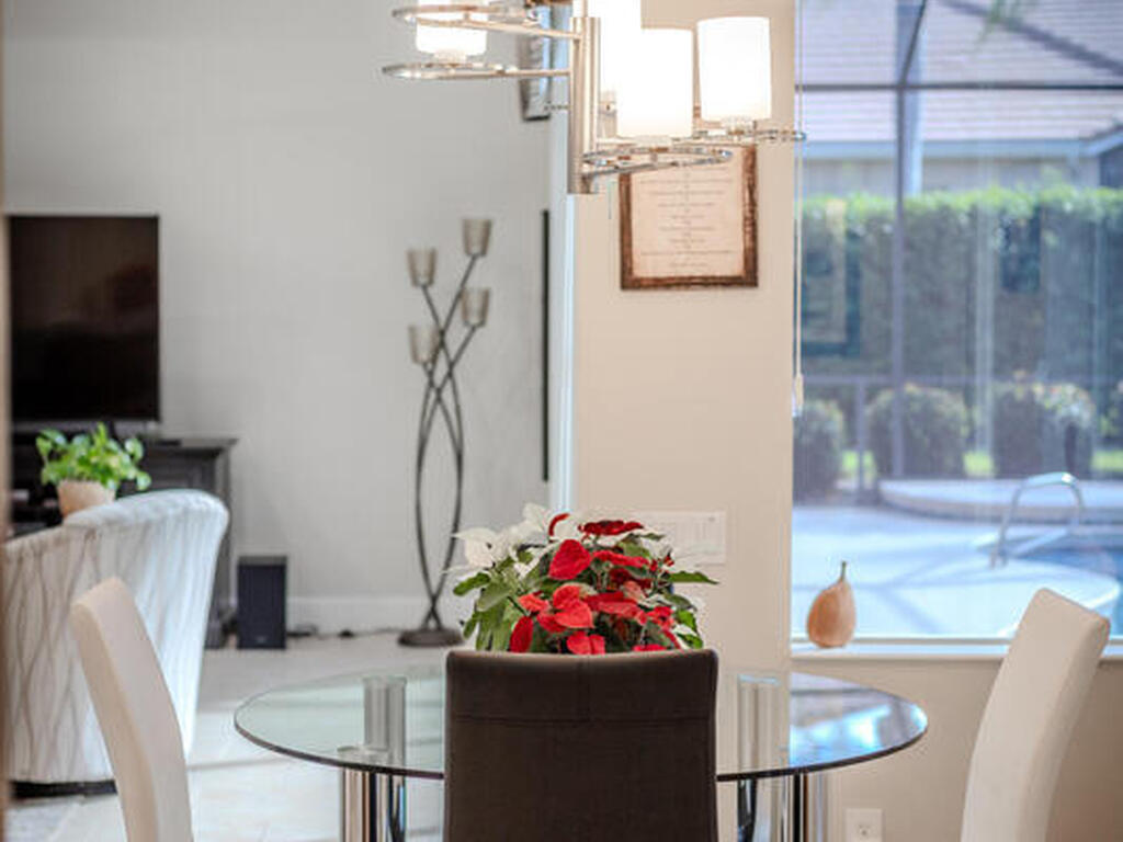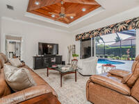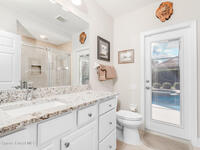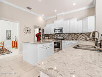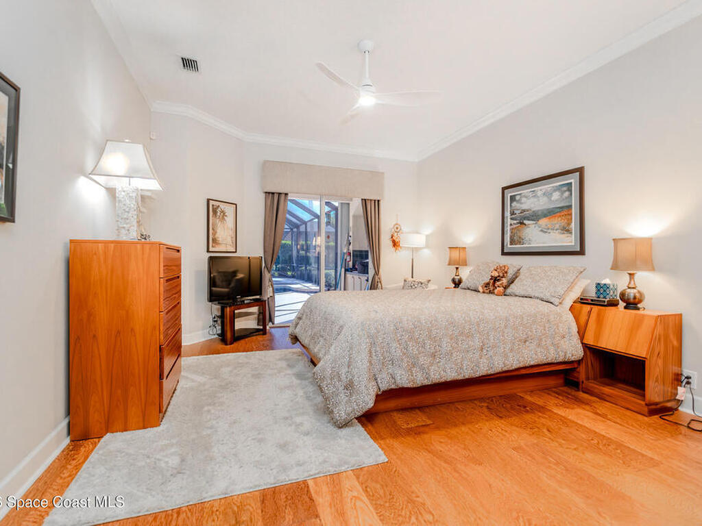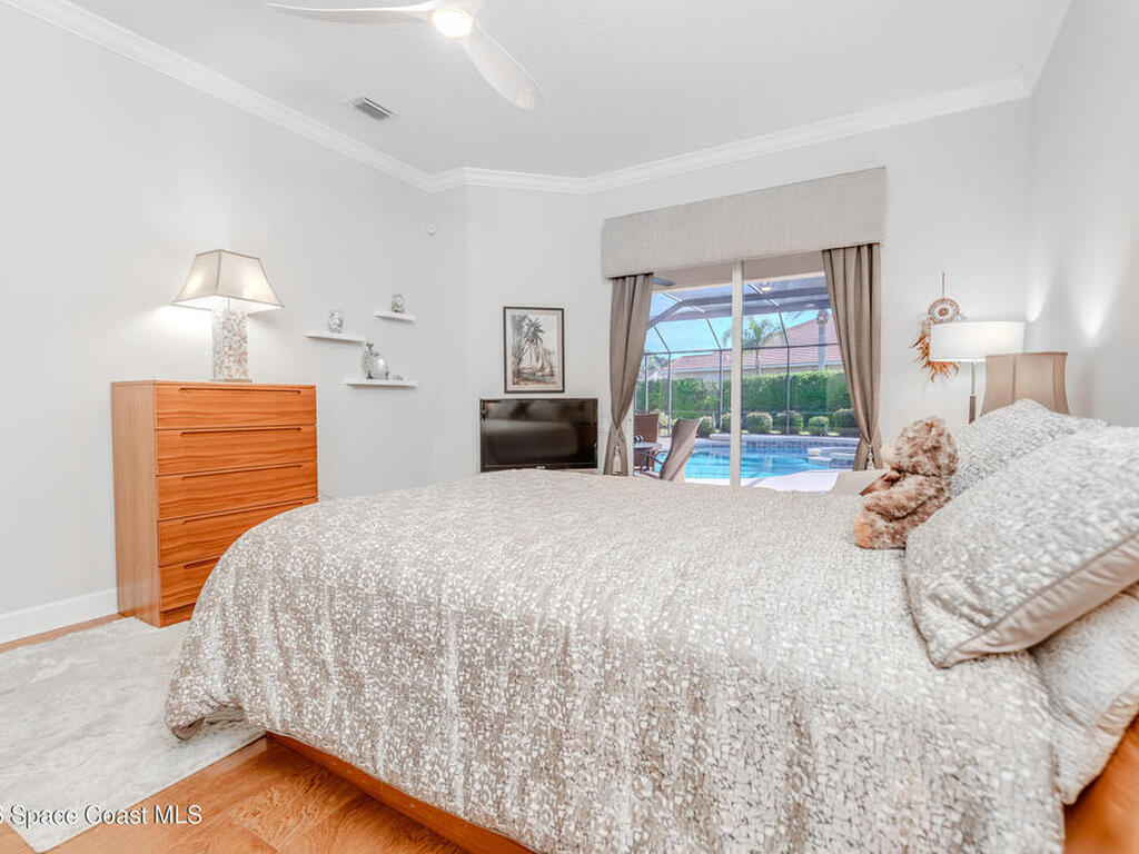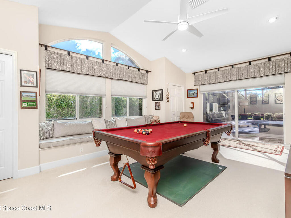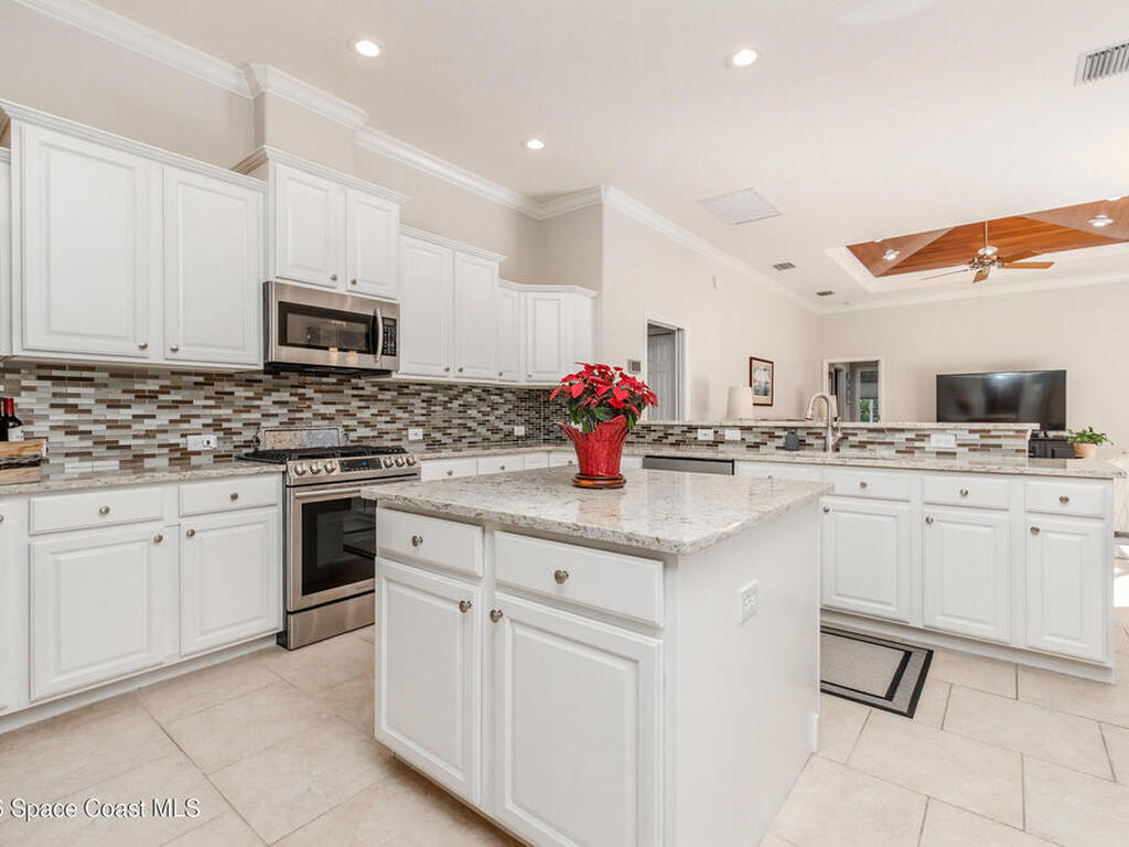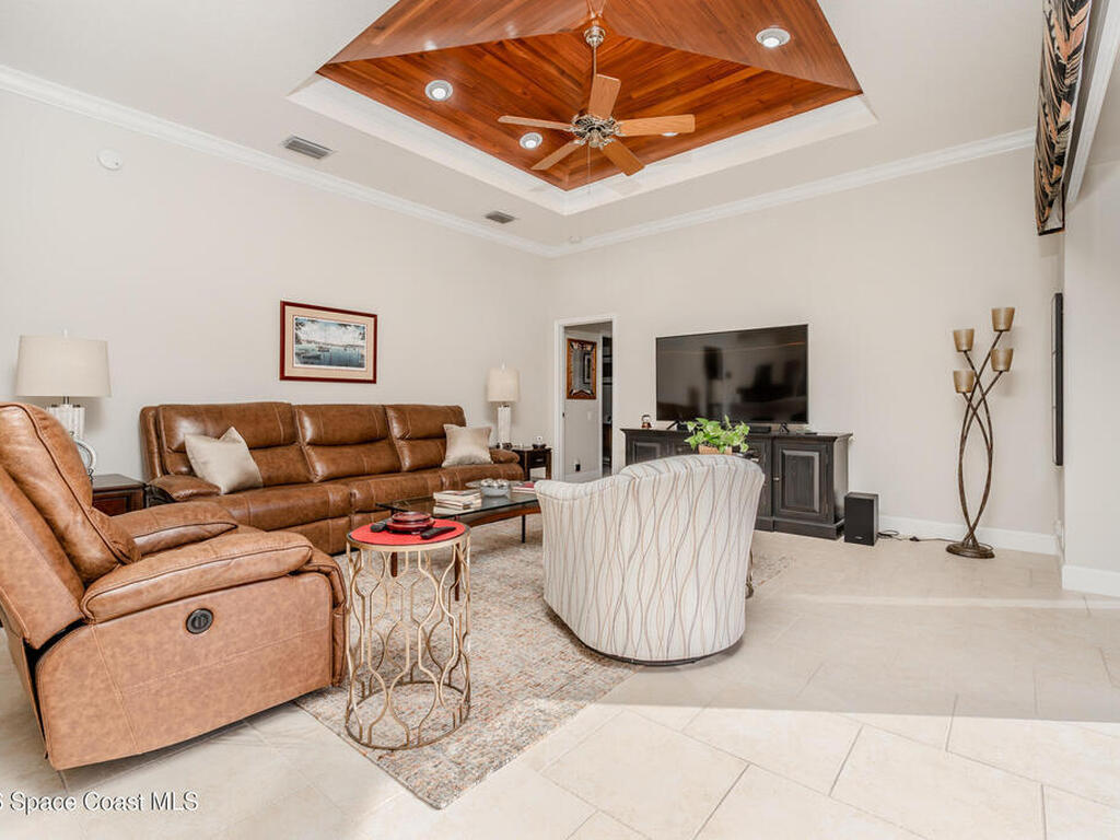 Welcome to this exceptional Arthur Rutenberg home in the guard-gated community of Baytree in Suntree. Built in 2001, this beautifully updated residence offers 3, 203 square feet with 4 bedrooms, 3 bathrooms, a private office, and a spacious bonus room featuring a pool table; ideal for entertaining or extended living. The desirable split floor plan provides flexibility for multi-generational living or an in-law suite. Elegant finishes include 10-foot ceilings, crown molding, 6-inch baseboards, tile flooring in the main living areas, and real wood floors in the primary suite and office. The chef's kitchen showcases quartz countertops, stainless steel appliances, a 5-burner gas range, ample cabinetry, and a breakfast bar with views of the outdoors. Designed for true Florida living, the home opens seamlessly to a private, gas-heated saltwater pool and spa with an expansive lanai and outdoor kitchen, surrounded by lush landscaping for privacy. Additional highlights include a Culligan