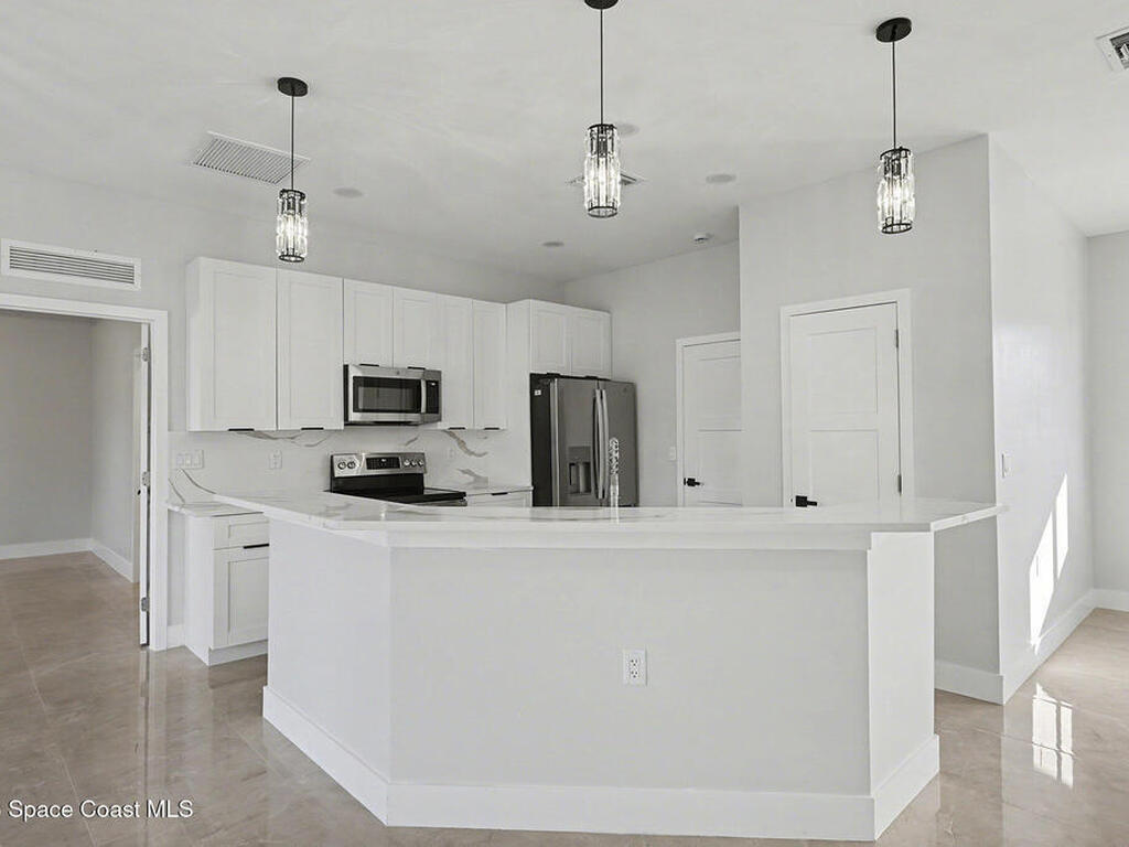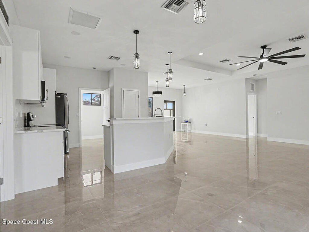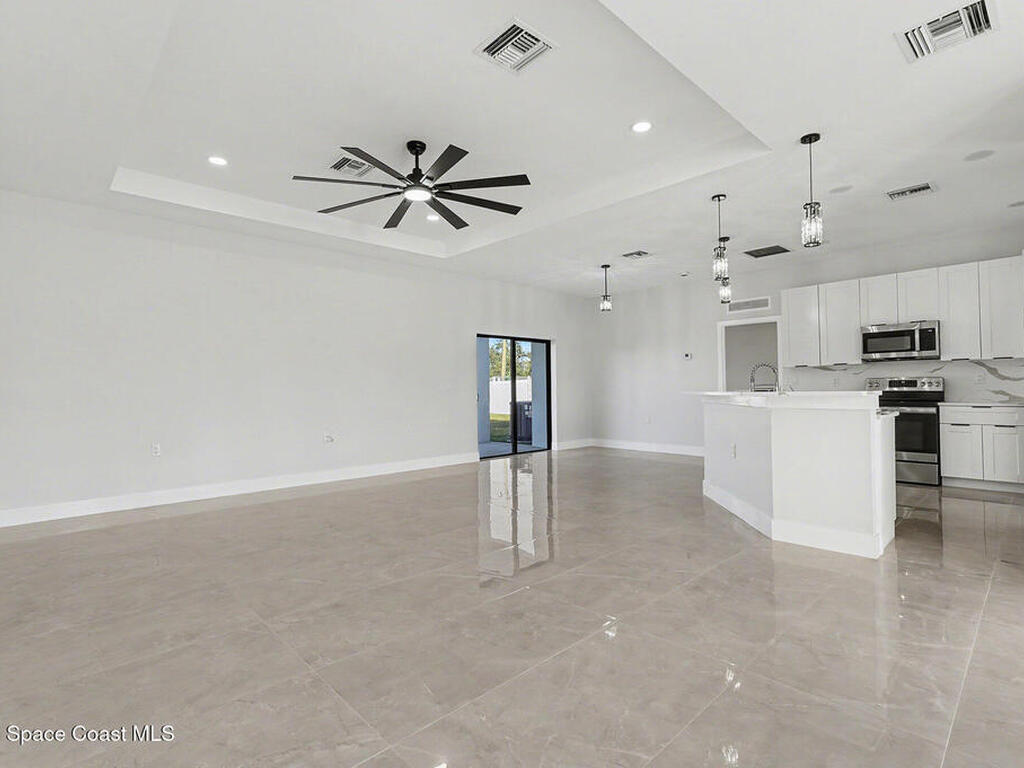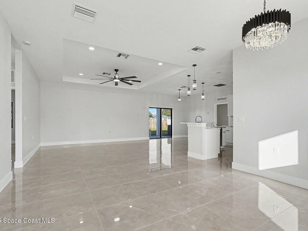 Welcome to your dream home! This exquisite 1684 sq ft of living, three-bedroom, two-bath residence is perfect for modern living! As you step inside, you'll be greeted by an open floor plan with beautiful 9.4-foot ceilings, and tile throughout, creating a seamless flow from room to room. The heart of the home features a beautiful kitchen equipped with elegant quartz countertops and stainless-steel appliances. The spacious living area boasts trey ceilings that add a touch of sophistication, complemented by stylish accent lighting and ceiling fans for comfort. Safety and efficiency are key, with a ring doorbell camera, and IMPACT WINDOWS and doors installed throughout the home, ensuring peace of mind. This home is conveniently located near shopping, dining, and recreational activities, schools and more! This brand-new home is ready for you to make it your own! Don't miss out on this incredible opportunity!