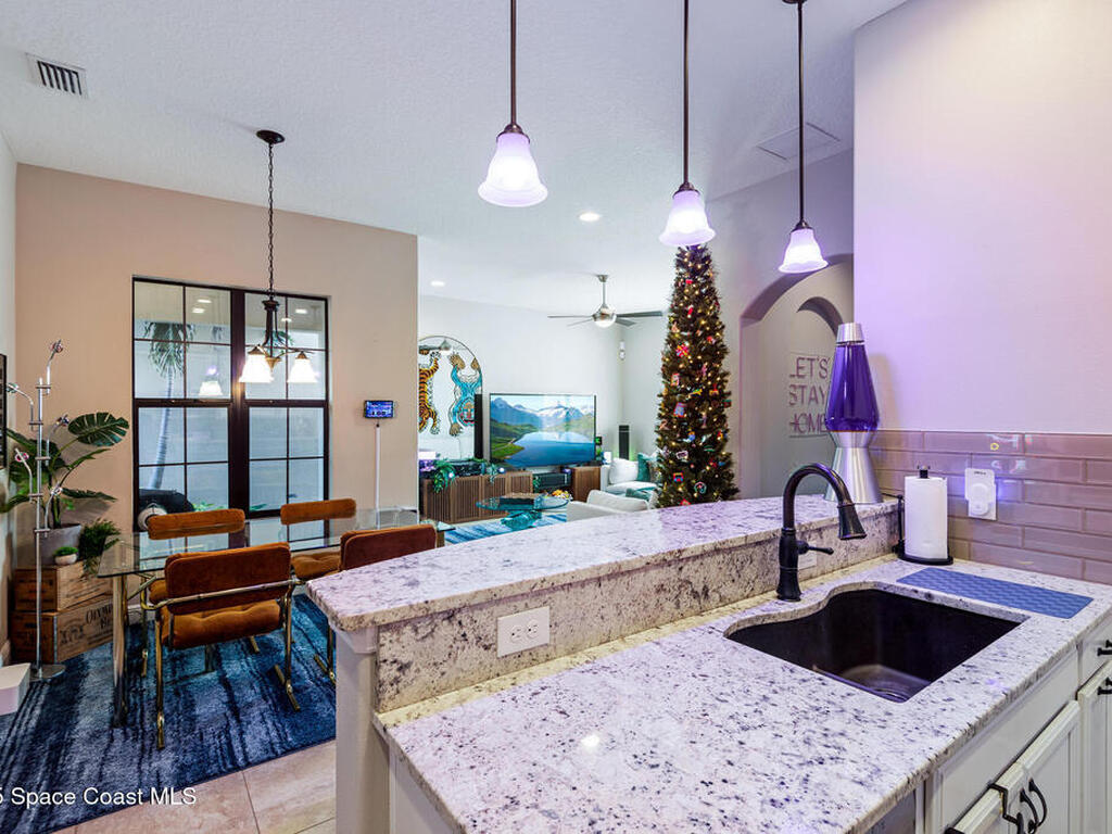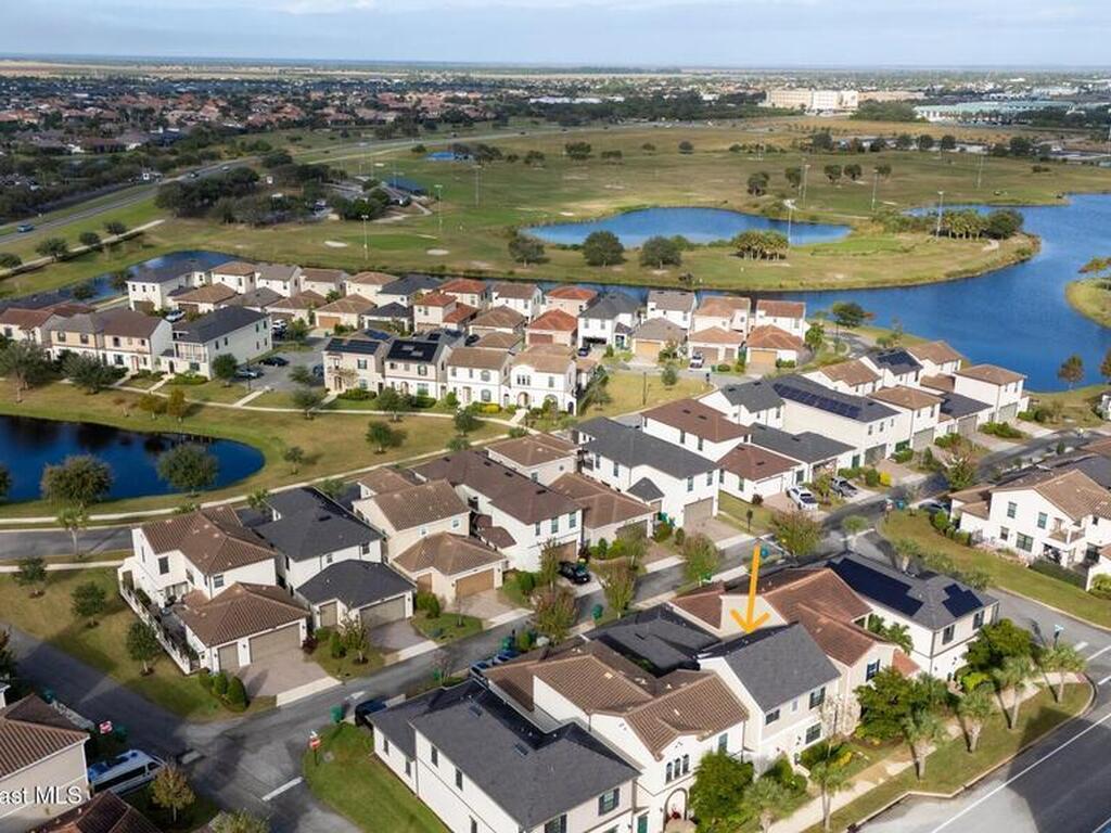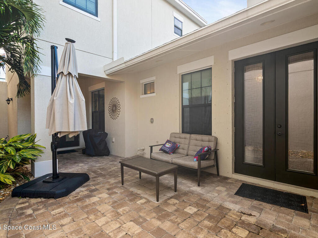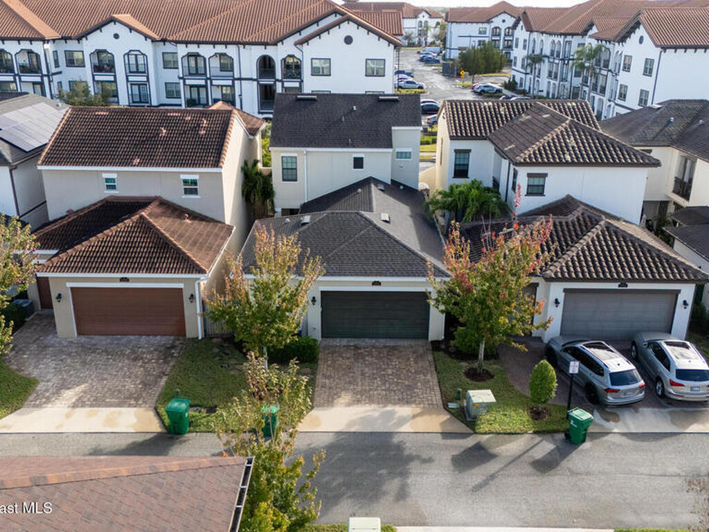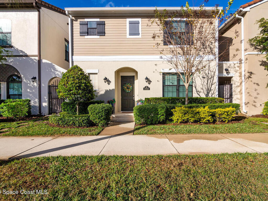 Located in the heart of the master-planned community of Viera, this exceptional residence is nestled within Arrivas Village, where distinctive Spanish Colonial architecture meets a traditional neighborhood feel in a vibrant urban setting. With restaurants, boutique shops, and entertainment just steps away at The Avenue, this highly walkable community offers a lifestyle of true convenience and connection.This 3-bedroom, 3.5-bath home is thoughtfully designed for seamless indoor-outdoor living. French doors from both the spacious great room and the first-floor owner's suite open to a charming pavered courtyard, ideal for entertaining or enjoying a quiet, private retreat. The modern open floor plan creates a natural flow between the kitchen, dining, and great room, ensuring the chef is always part of the conversation. The kitchen showcases crisp white cabinetry, granite countertops, stainless steel appliances, and a walk-in pantry, blending timeless style with everyday functionality.