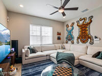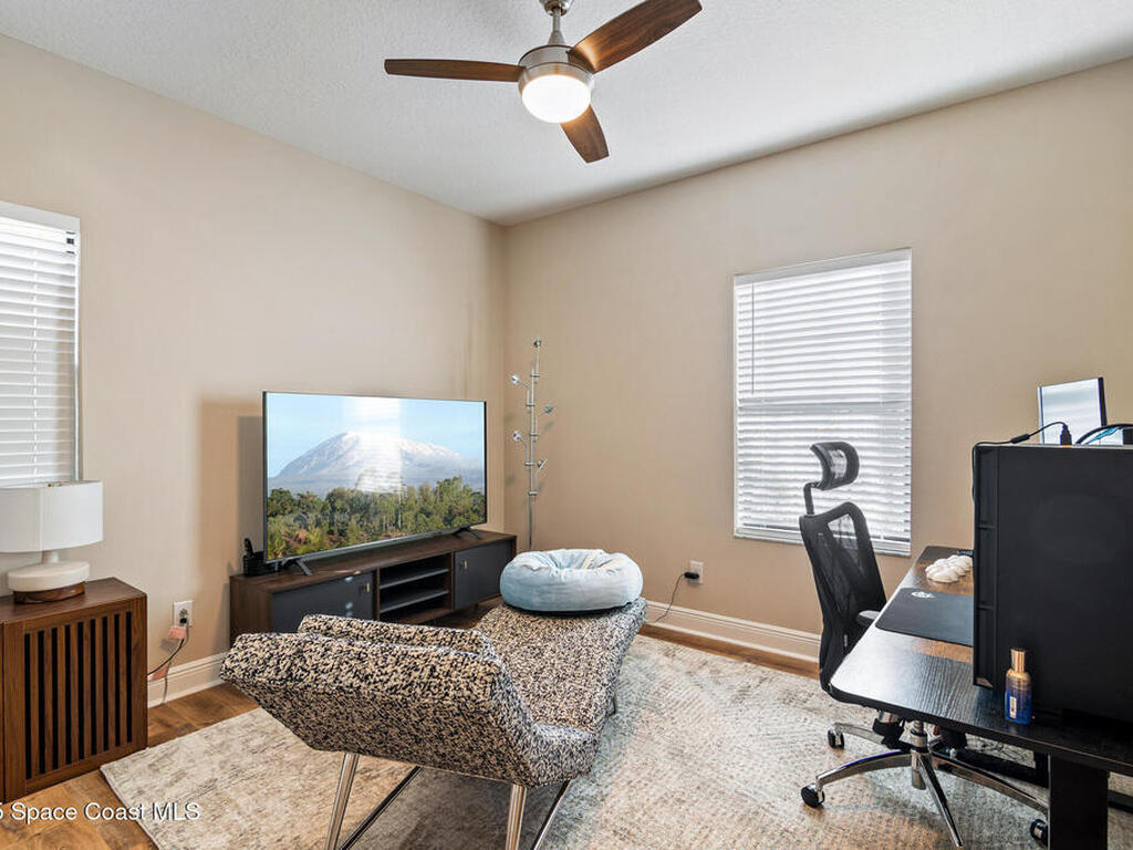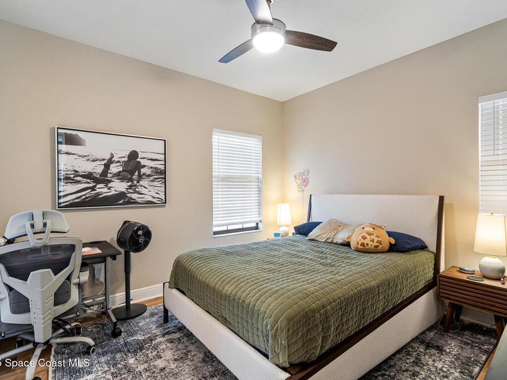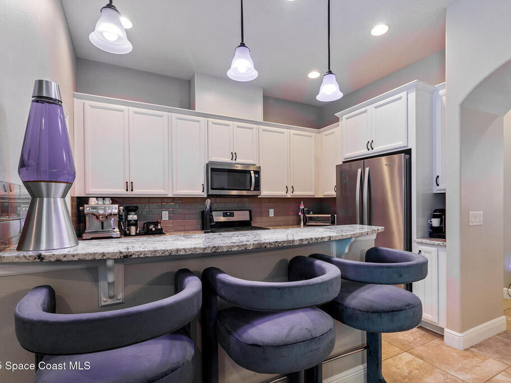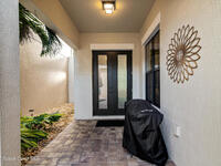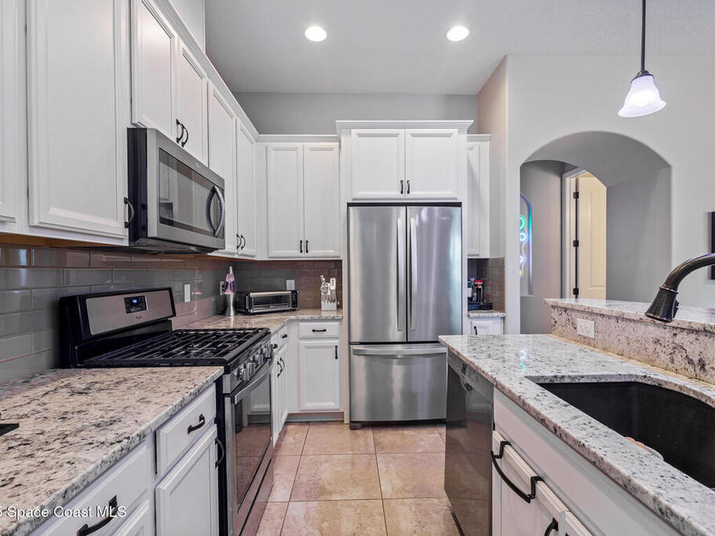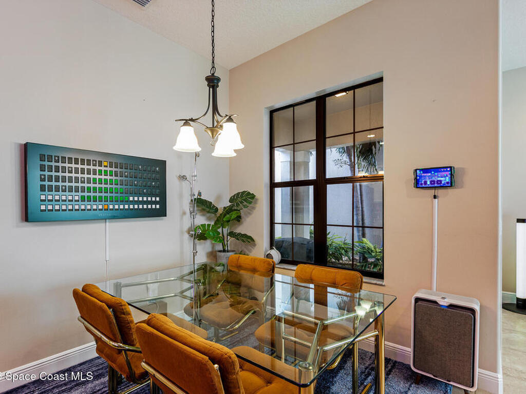Located in the heart of the master-planned community of Viera, this exceptional residence is nestled within Arrivas Village, where distinctive Spanish Colonial architecture meets a traditional neighborhood feel in a vibrant urban setting. With restaurants, boutique shops, and entertainment just steps away at The Avenue, this highly walkable community offers a lifestyle of true convenience and connection.This 3-bedroom, 3.5-bath home is thoughtfully designed for seamless indoor-outdoor living. French doors from both the spacious great room and the first-floor owner's suite open to a charming pavered courtyard, ideal for entertaining or enjoying a quiet, private retreat. The modern open floor plan creates a natural flow between the kitchen, dining, and great room, ensuring the chef is always part of the conversation. The kitchen showcases crisp white cabinetry, granite countertops, stainless steel appliances, and a walk-in pantry, blending timeless style with everyday functionality.