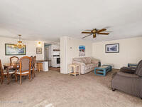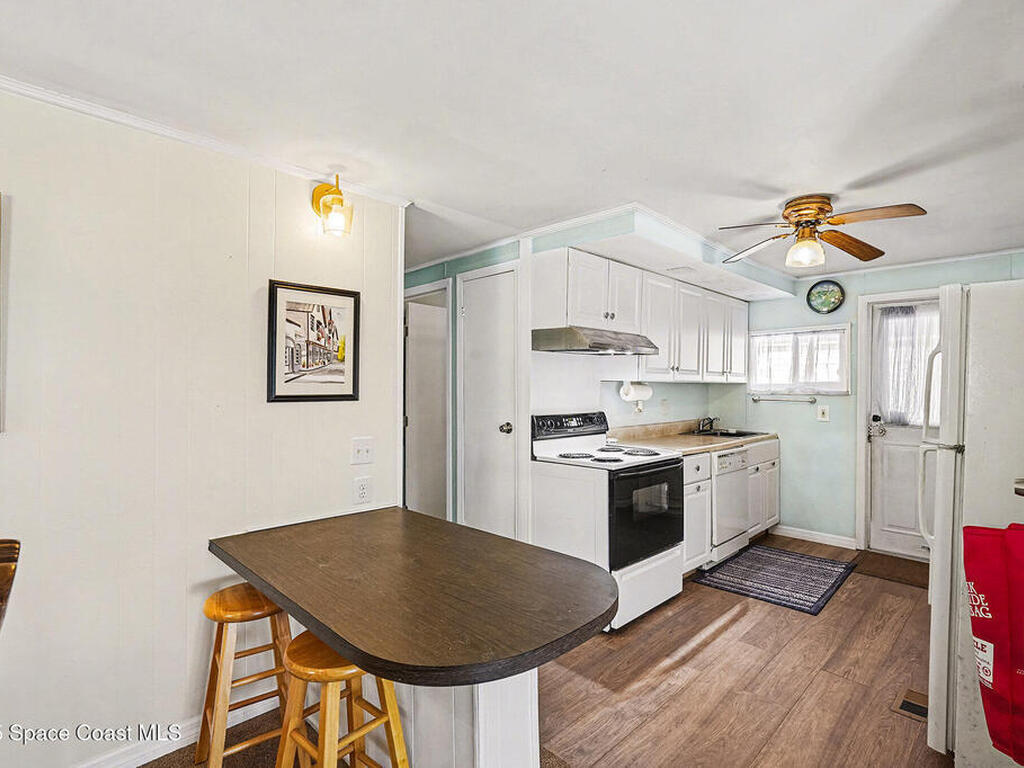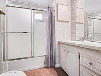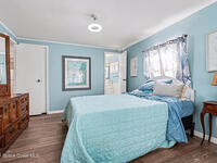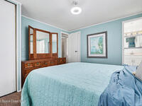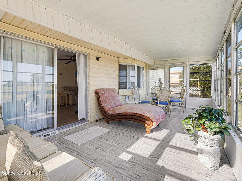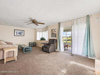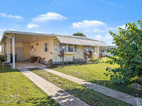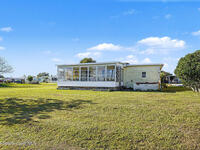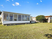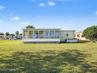 One of the most sought after locations in Barefoot Bay. This home sits facing the 7th Green of the Public Golf Course and has a vacant lot next door giving space between your neighbors. The bedrooms are spacious with loads of natural light. The carport is large, the home has newer cabinets, flooring and the washer and dryer was moved inside the unit from the outside shed. The metal roof was put on in 2004. HOA dues paid annually are in taxes.