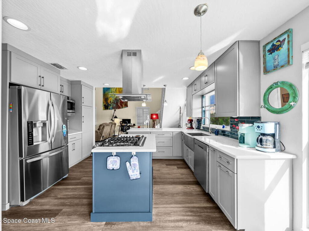 Enjoy breathtaking sunrises and long-range water views! Navigable deep water direct to the Banana River with no bridge restrictions. New seawall in 2021. New roof in 2017. Flexible open floor plan with free-standing double-sided gas fireplace. If you love light. bright, airy spaces, this is the home for you! Recently redesigned kitchen with stainless steel appliances, shaker-style cabinets, soft-close drawers & cabinets, and quartz countertops. Primary loft suite w/private balcony & water views, jetted tub, separate walk-in shower, double sinks & walk-in closet. (Potential for a 1st floor primary suite with some modifications) All hard surface flooring throughout (no carpet). Tastefully landscaped front and back. Brick paver driveway. Bahama shutters. Relax pool side under your cozy tiki-hut while dolphin & manatees play right in your own backyard. This sought after location is mere minutes to Kennedy Space Center w/easy access to SR 528 & I-95.
