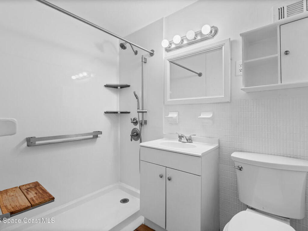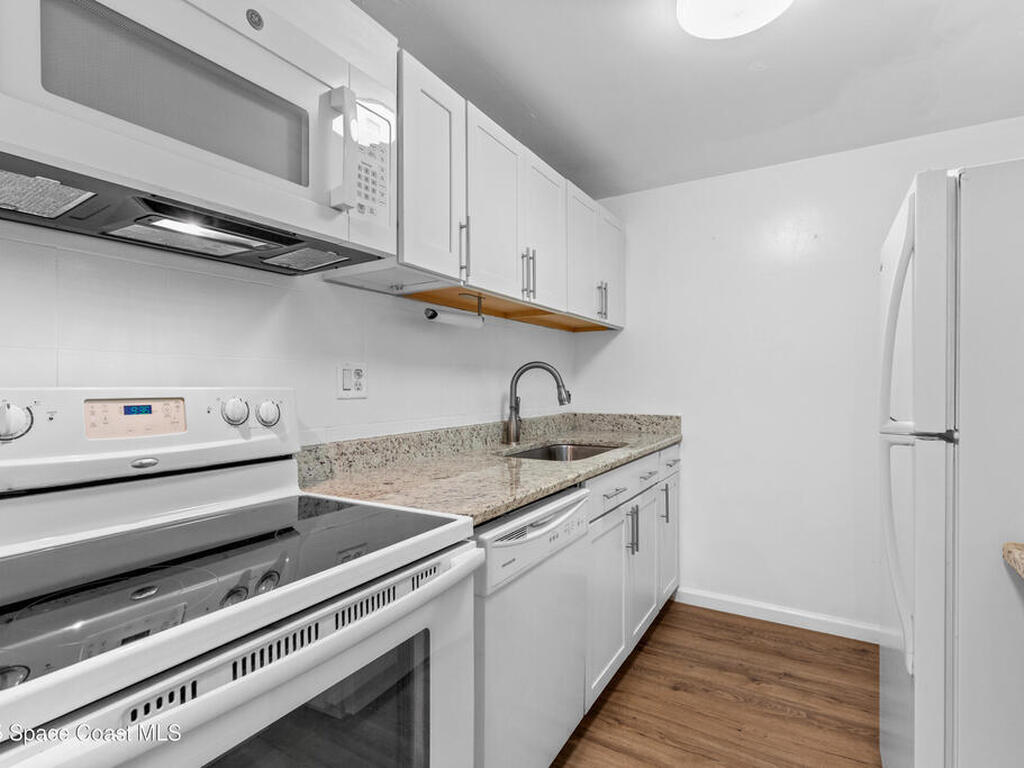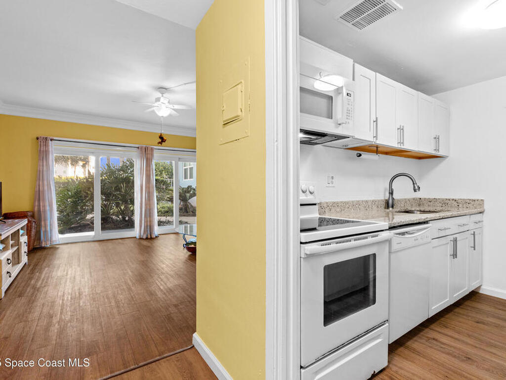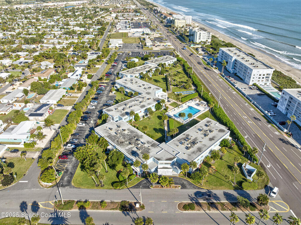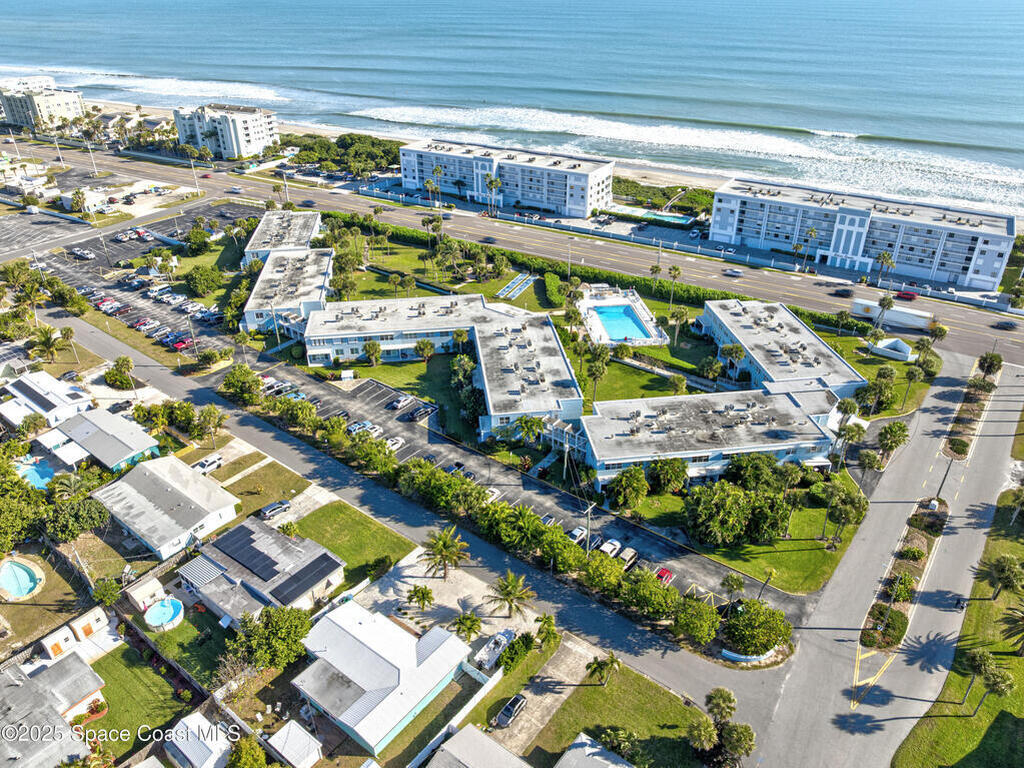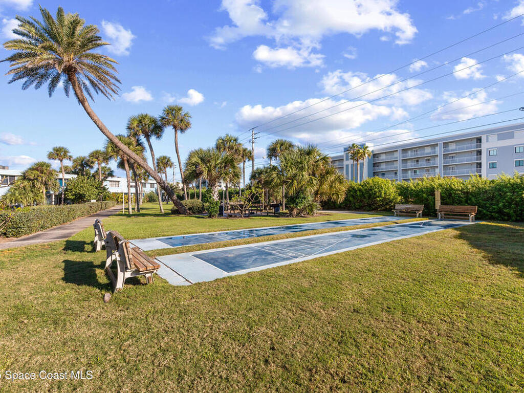 Affordable beachside living or perfect weekend getaway! 1 bedroom, 1 bath, on A1A across the street from the Atlantic in Satellite Beach. Public park/ocean access directly across from building 6. Olympic sized pool, Bbq/picnic area, basketball court, shuffleboard and recreation room. Additional storage in building hallway. On site laundry facilities. Condo fee covers cable tv and internet, water, sewer and trash, grounds maintenance, structural maintenance, funding of reserves, structural insurance, and pest control- only $344/month!Impact glass windows and sliding glass doors, installed approx 5 years ago. Laminate flooring throughout, installed 2023. Handicap access walk in shower with seat installed 2024. Kitchen cabinets and granite countertop installed 2023.HVAC replaced July, 2024 and new thermostat. Water heater replaced 2022.Large utility/storage room.