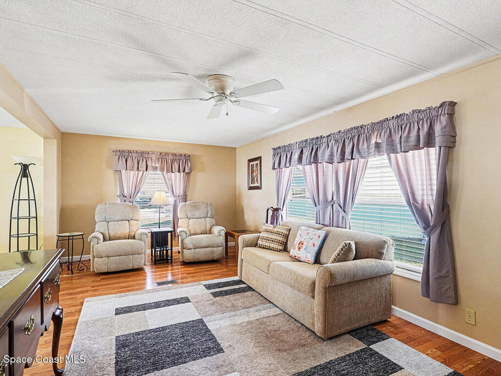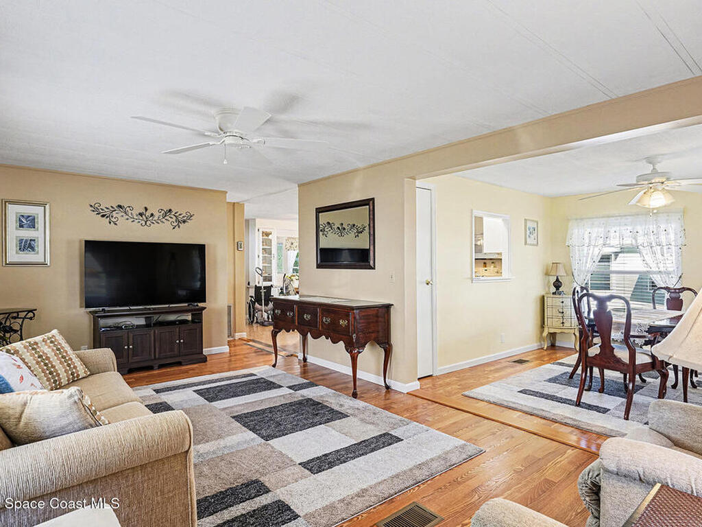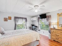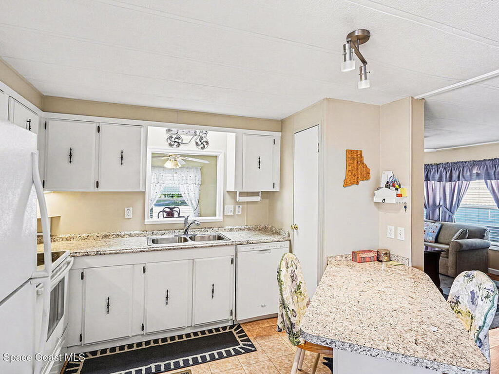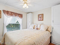 Beautifully updated and move-in ready, this fully furnished home offers peace, privacy, and modern comfort in an active senior community. Featuring all sheetrock interior walls, newer dbl-pane windows & 36'' door, updated flooring, bathrooms, electrical panel, and roof vents--this home has been thoughtfully refreshed. The kitchen shines with modern countertops, under-cabinet lighting, a brand-new sink, new microwave, and a deep pantry offering excellent storage. An attached 16x10 shed includes a newer washer and brand-new dryer & water heater. The extra-large primary bedroom boasts a step-in shower and a spacious walk-around closet with dual entrances. The guest bedroom includes built-in storage features, keeping everything organized, and clutter-free. Enjoy outdoor living with new vinyl skirting and screened enclosure, perfect for relaxing year-round. Situated on a quiet cul-de-sac the home also features a widened driveway. Located in a vibrant senior community where you own the land!