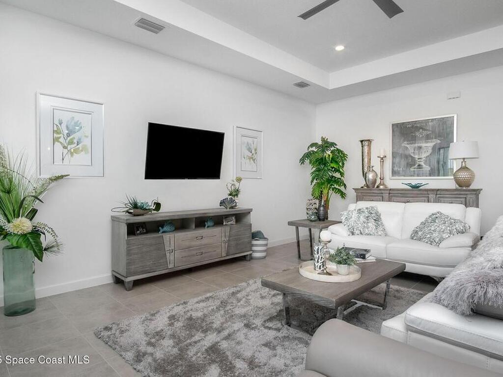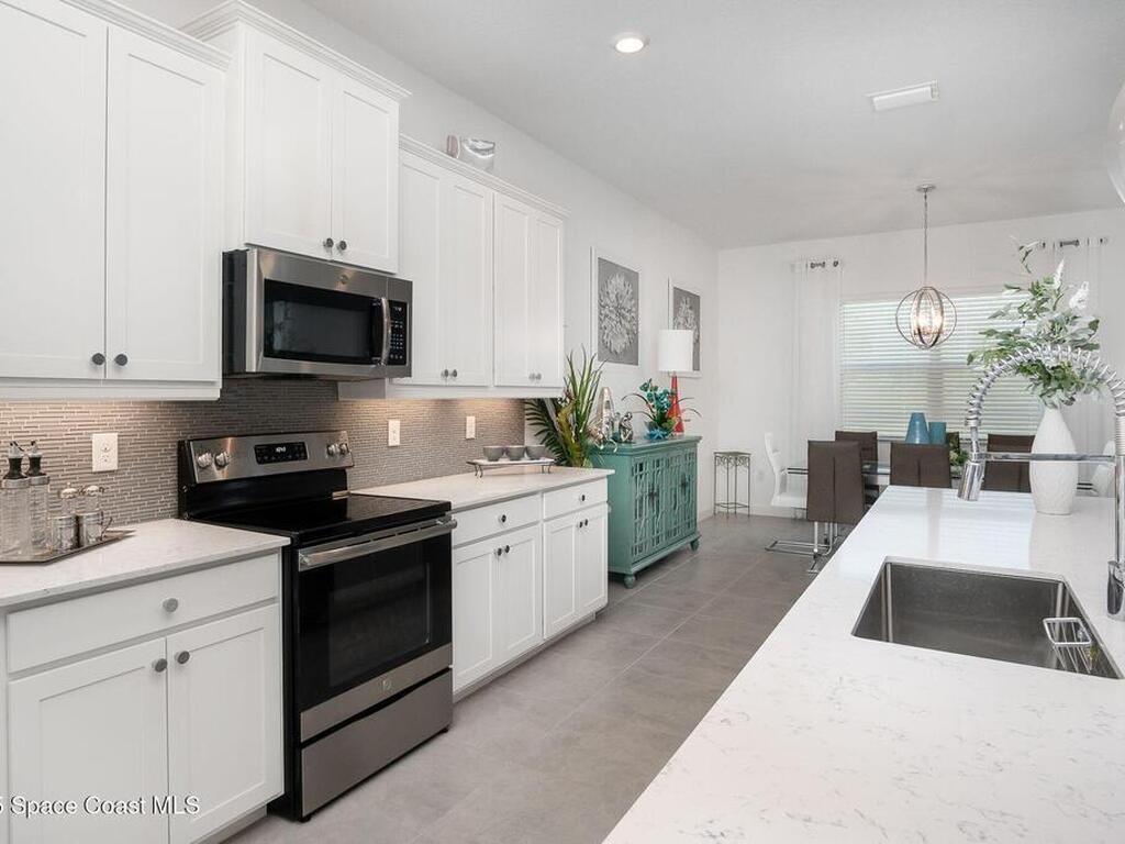 Check out this stunning 4/3 with 3 car garage, The Open Floorplan has a den that could be a 4th bedroom or office.. This desirable Viera model, offers, a great room, and formal dining room. The high ceilings with crown molding and over size doors, create the feeling of grandeur, making this property a must see. The spacious kitchen has an oversize island, tons of cabinet and a large pantry providing lots of extra storage and seating to make entertaining a snap. Outside you will see the covered terrace with an extended dome screened in patio with a partial view of the pond. The 1/3 ac. over size lot, offering plenty of room for a custom pool. The large master bedroom and on suite has 2 huge closets and storage in abundance, a garden tub and separate shower. The guest suite offers a private bath, for guest to enjoy when visiting. Beau Designer touches and up grades are every were you look, and far too many to list. Come see it today for yourself
