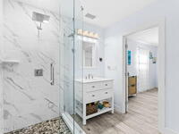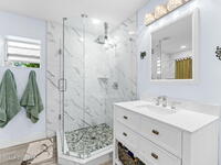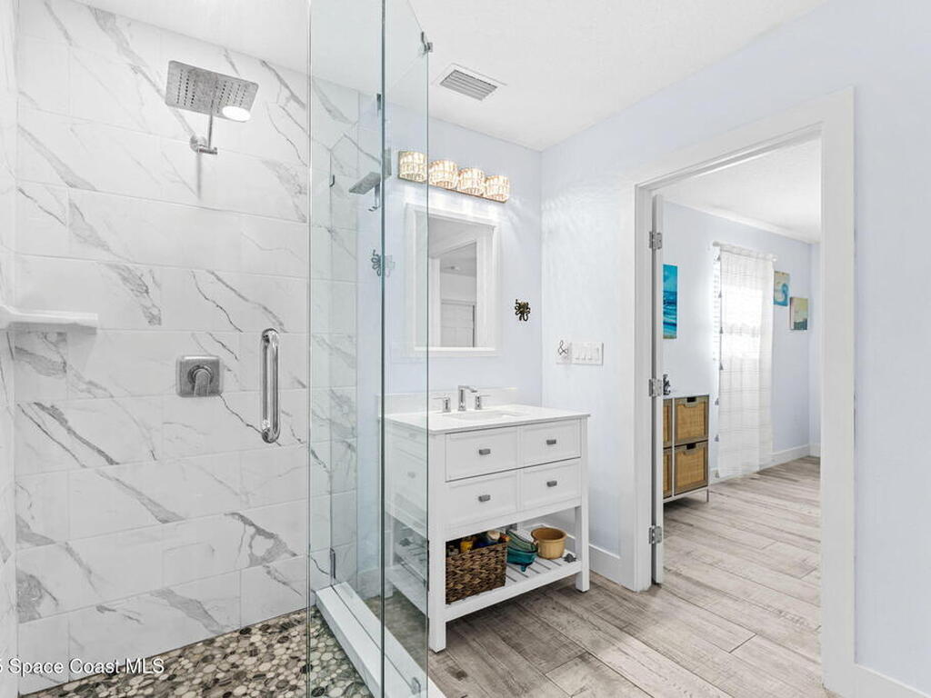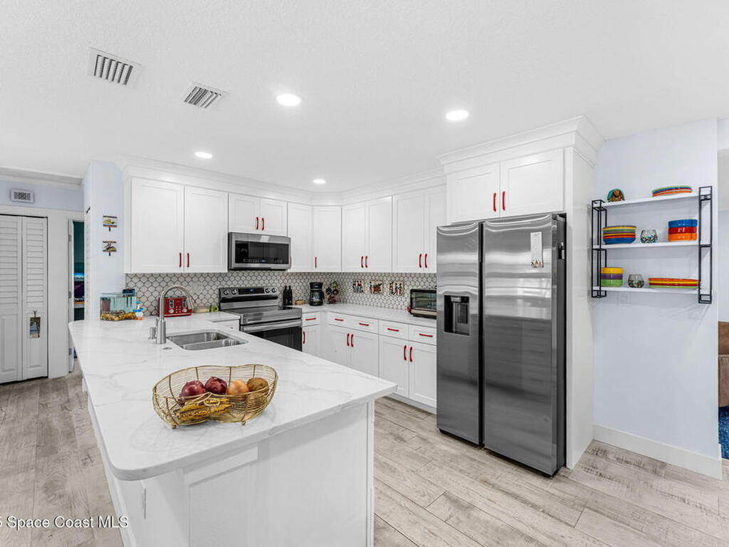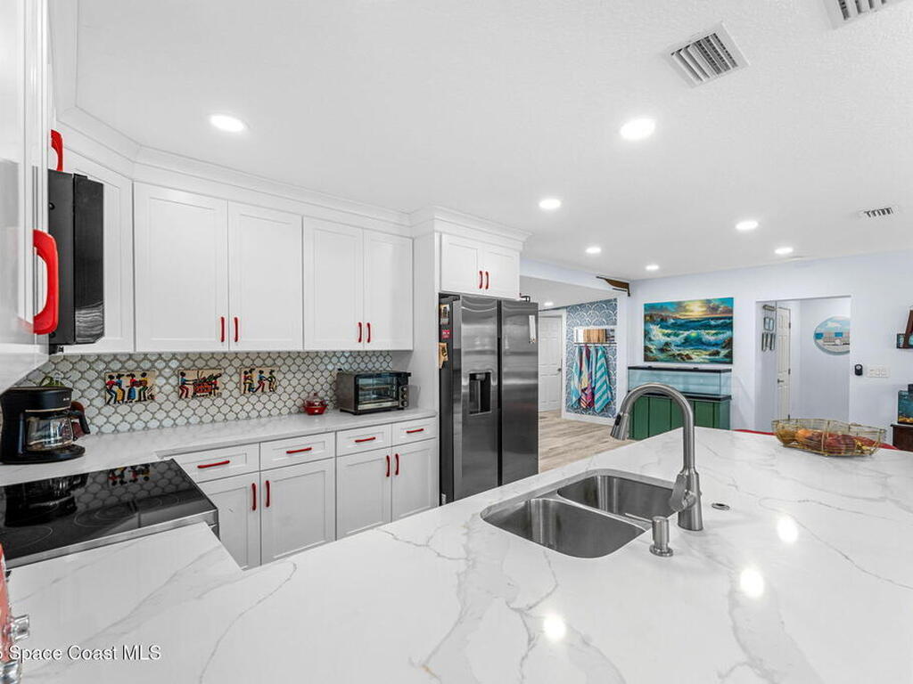 Beachside Beauty: NO CAST IRON, 2022 ROOF, CORNER LOT! A rare beachside find without the typical beachside price tag. Sitting on a large corner lot and just a short stroll to the ocean, this fully updated home offers modern comfort in one of the most desirable spots on the island. Inside, the bright open layout centers around a gourmet kitchen with white wood cabinetry, white quartz, stainless appliances and a clean backsplash. Nearly everything is new: double-pane windows, PVC drains, PEX lines, electric, A/C, ducts, insulation, drywall, lighting, wood-plank tile, baseboards, irrigation, sod, fence, paver pad, fans and doors. Two solar attic exhaust fans add year-round efficiency.All three bathrooms are brand new and the split floor plan gives you a private, spacious primary suite. Outside, the fenced yard and fresh landscaping make the lot feel even larger. Don't miss your chance to grab the BEST value on the beachside:A-rated schools and true island living included!