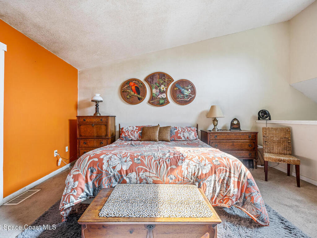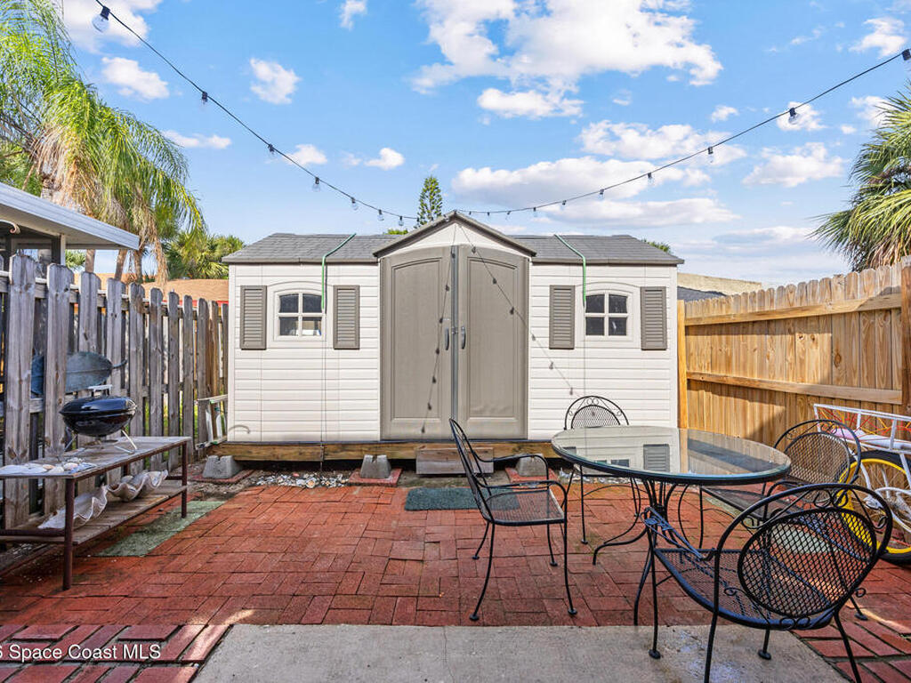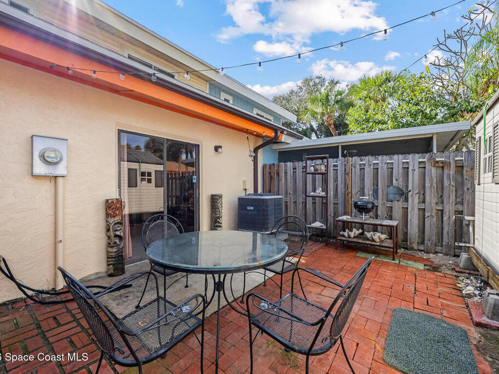 Nestled just a short stroll from the pristine coastline, this beautiful townhome offers the perfect beachside retreat. Boasting over 1, 100 square feet of thoughtfully designed living space, this 2-bedroom, 2-bathroom home seamlessly combines beachside living with coastal charm. The primary bedroom is conveniently located downstairs, providing privacy and ease of access and opens to a marvelous fenced outdoor seating area and shed. Upstairs, the second bedroom features its own full bathroom. Bring your design ideas and create your own Coastal Retreat. INVESTORS...Short term rentals are allowed. Fine Florida Living Awaits!!