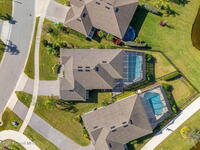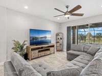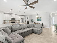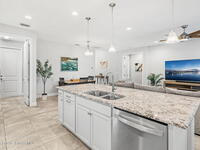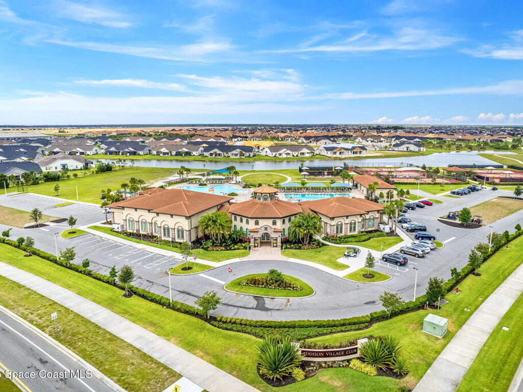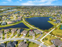 Built in 2021, this pool home in Trasona at Addison Village lets you skip the build process and enjoy a home and pool already complete. The large screened and trussed lanai features a freeform saltwater pool with waterfall and overlooks multiple ponds and a walking trail. Peaceful pond views make the pool deck a favorite spot at dusk. Inside, the open layout includes eight foot doors, nine to ten foot ceilings, plantation shutters, and recessed lighting. The kitchen offers granite, premium cabinetry, a natural gas range, decorative backsplash w/ glass block inlays, generous counter space, and a walk in corner pantry. The primary suite features a tray ceiling, French door entry, large walk in closet, and bath with dual granite vanities plus a tile to ceiling shower with built in seat. The home includes a two car garage, metal storm shutters, a gas instant water heater, and washer and dryer convey. Addison Village amenities include a clubhouse, pickleball, dog park, and walking trails.