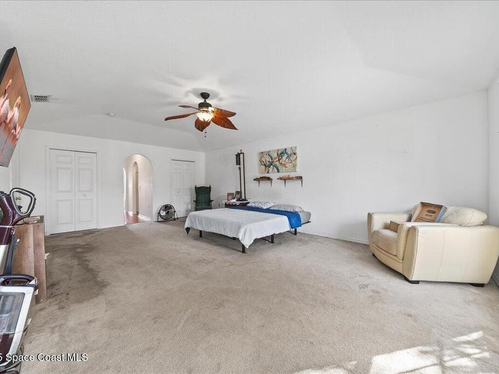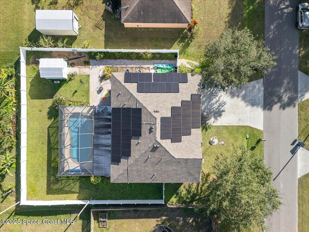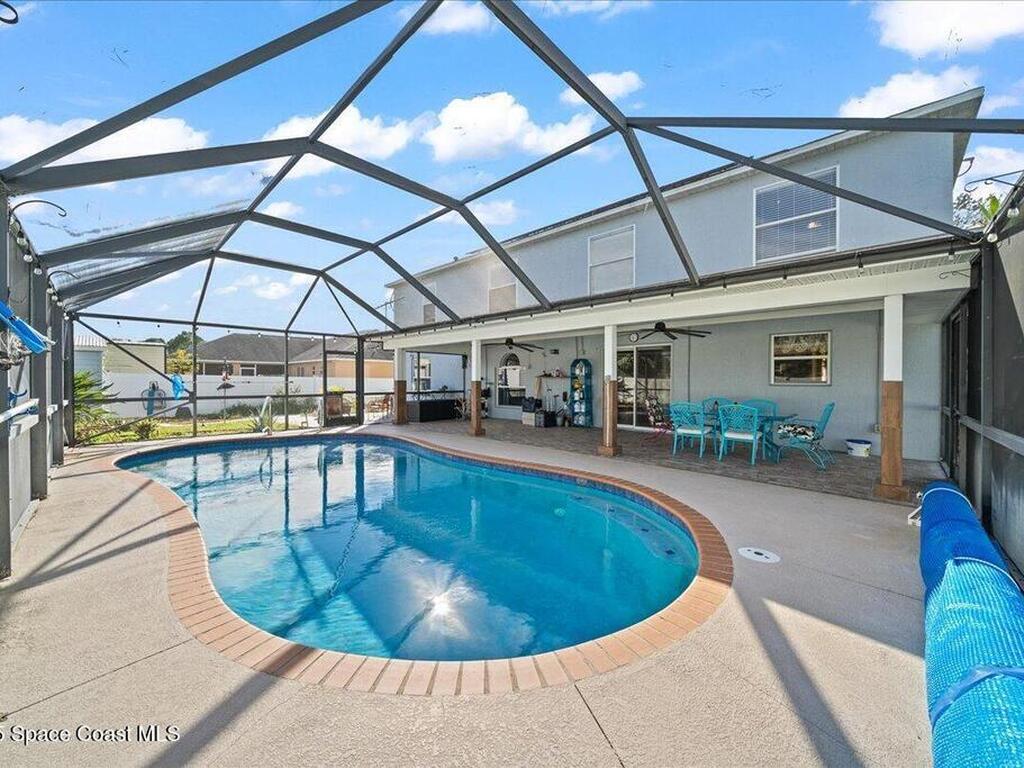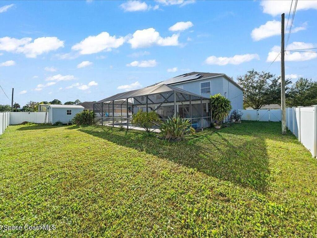 Resort-style, spacious 3, 942 sq ft home with screened saltwater pool and 3-car garage, packed with big-ticket upgrades and room for everyone. Fantastic for multigenerational living, guests, or a big household. A complete solar system (paid off at closing) keeps FPL bills very low along with HVAC systems from 2018 and 2023, a 2022 roof, recent exterior paint, and city water/sewer. The heart of the home is a spacious kitchen with stainless steel and a huge walk-in pantry, perfect for storage and entertaining. The flexible layout includes a private downstairs suite for guests or in-laws, plus five bedrooms upstairs--four with their own baths --and a loft perfect for a media, game, or play room. Outside, enjoy the screened saltwater pool, a vinyl-fenced yard with plenty of green space for pets, play, or gardening, and a storage shed. Irrigation is on a separate well. Inside, this home is ready for fresh paint and new flooring, giving you the chance to personalize the interior!