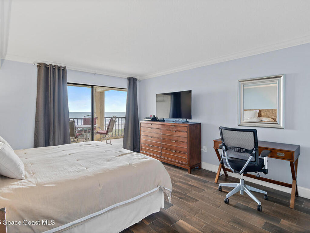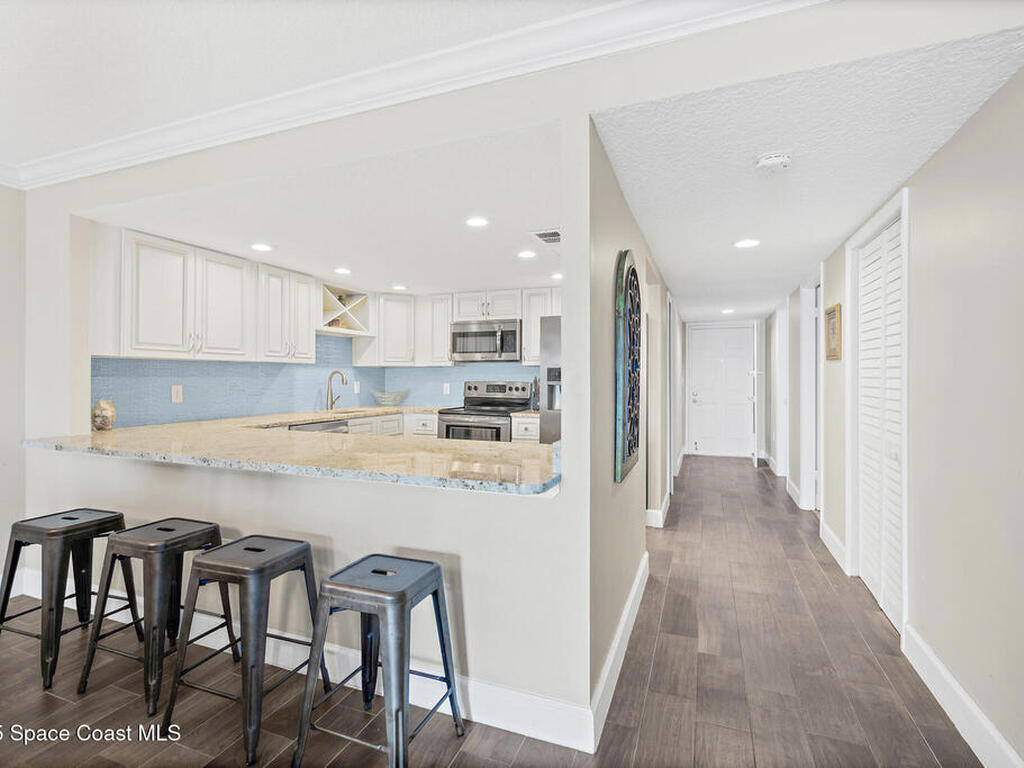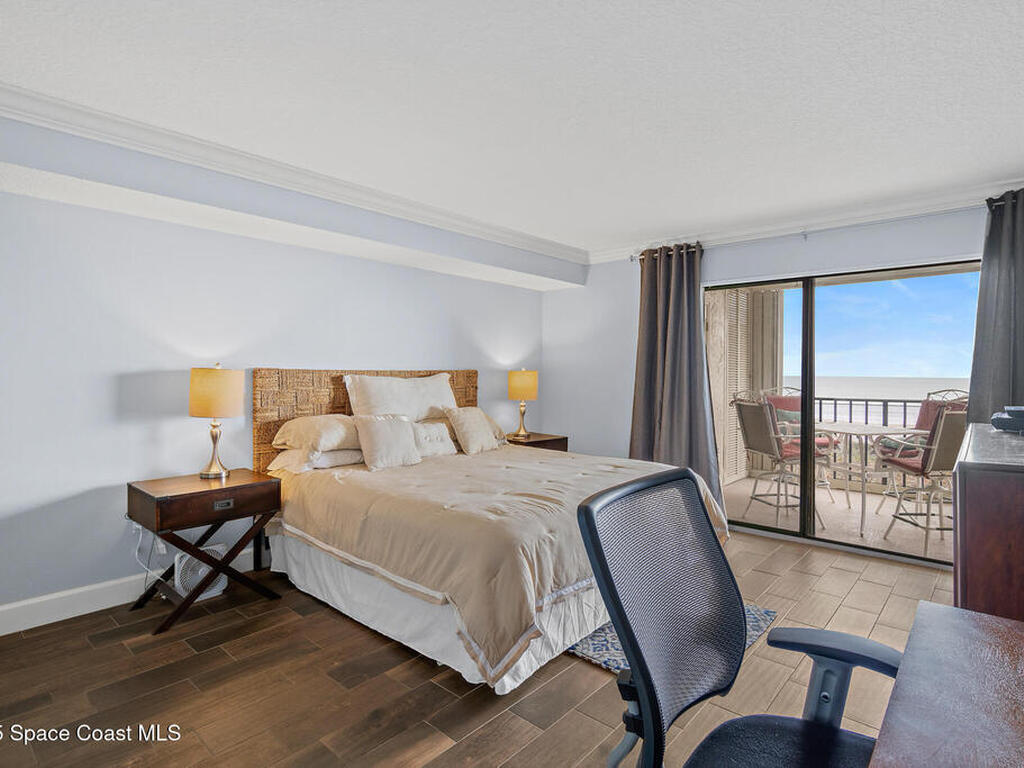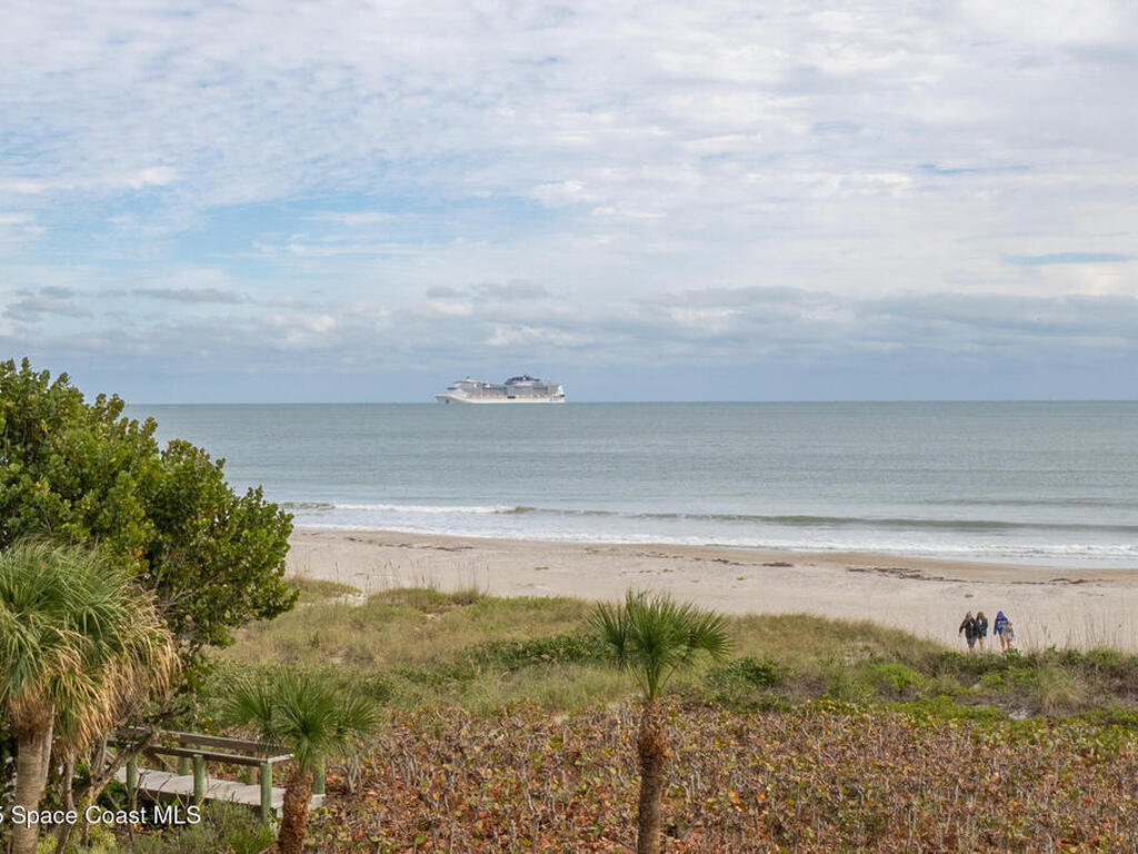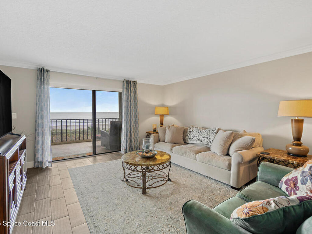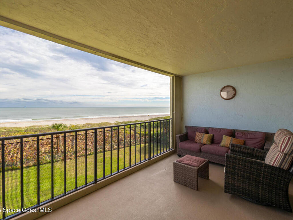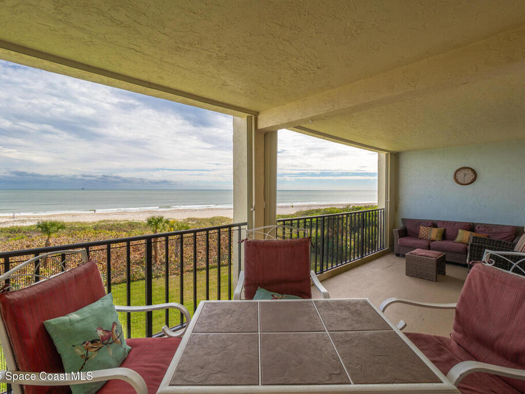 DIRECT OCEANFRONT LIVING awaits in this beautifully maintained 4th-floor 3 bedroom, 2 bathroom condo with breathtaking panoramic water views! Enjoy spectacular sunrises, Atlantic ocean breezes and rocket launches from your covered beachfront patio, complete with storm shutters and impact windows for peace of mind. This light and bright residence features an open floorplan, wood-look tile flooring throughout the main living areas & bedrooms, and sleek tile flooring in bathrooms. The modern kitchen offers granite countertops and newer stainless steel appliances. The oceanfront primary suite includes an ensuite bath and spacious closets, while two additional guest bedrooms share a full bath. A private 1-car garage and an in-unit laundry room adds convenience, and the condo can be sold furnishings negotiable for an effortless move-in experience. Ideally located near shops, restaurants, the Cocoa Beach Pier, and Port Canaveral, this is a rare opportunity to own a true oceanfront retreat!
