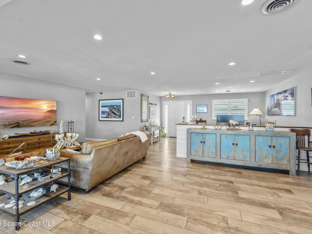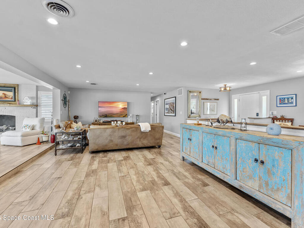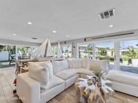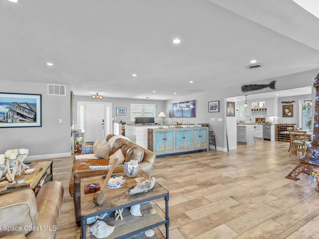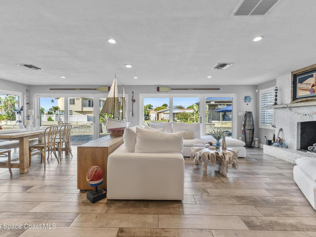 From the moment you arrive, it's clear that this home has it all--beginning with the beautifully pavered driveway and striking curb appeal that set the stage for what's inside. This is not just a residence, but a refined coastal lifestyle. Stunning inside and out, this impeccably updated home offers effortless Florida living just two blocks from the beach- an easy walk, quick bike, or golf cart ride away. Designed with an open, light-filled floor plan ideal for elevated entertaining, the home centers around a large custom kitchen featuring solid wood custom cabinetry, quartz countertops, and a spacious island with seating. A thoughtfully designed laundry/mudroom and butler's pantry just off the kitchen adds both functionality and elegance.The spacious living/family room features a propane fireplace and opens seamlessly to breathtaking views of the backyard and water, creating a warm and inviting space for both everyday living and entertaining. Step outside to a private outdoor oasis