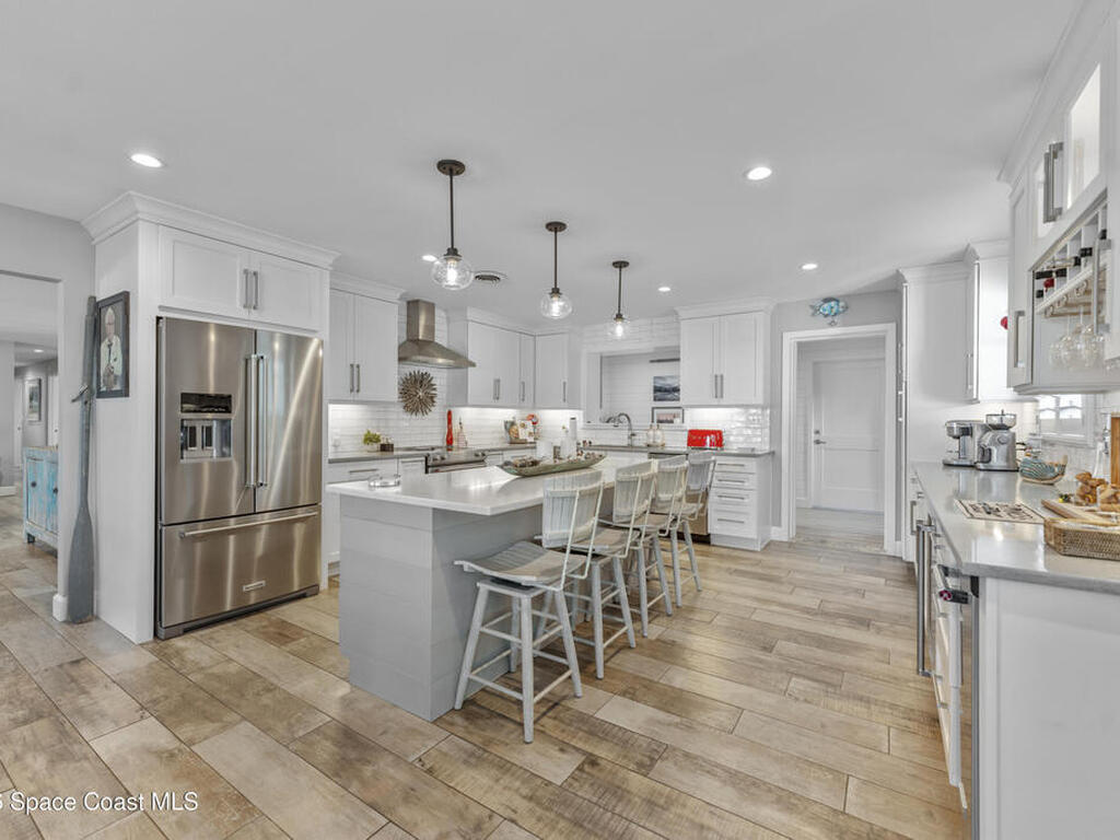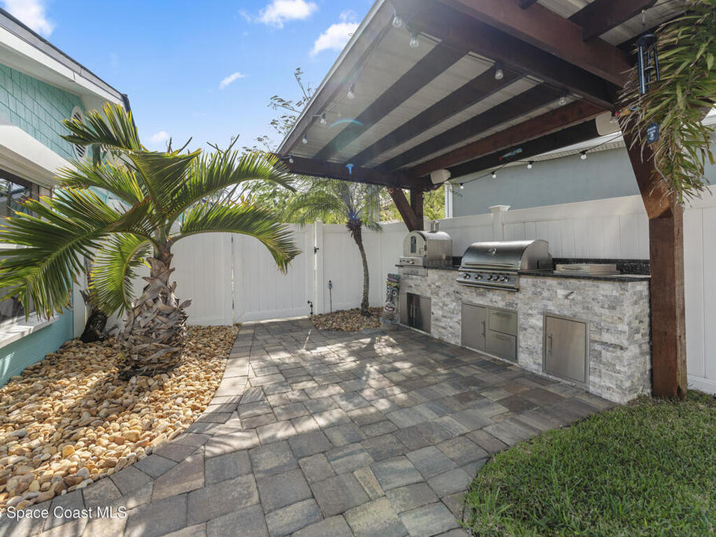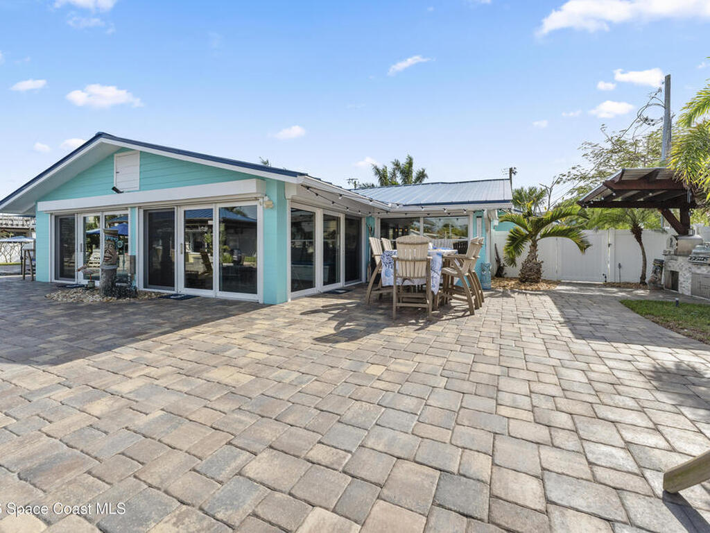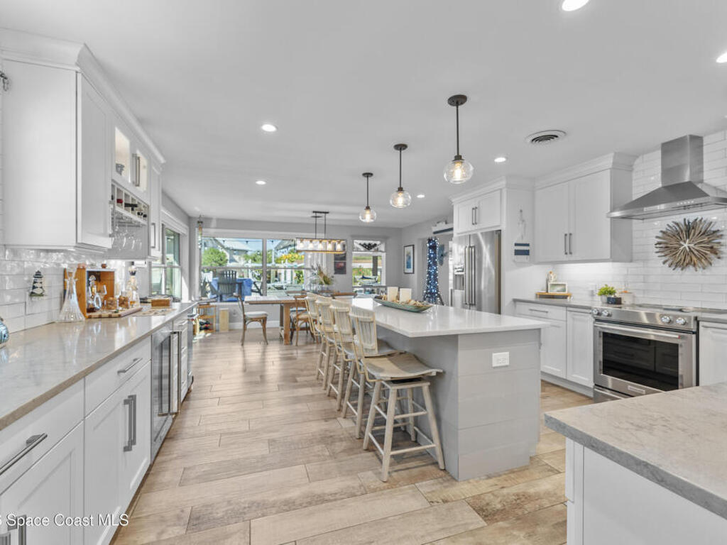 From the moment you arrive, it's clear that this home has it all--beginning with the beautifully pavered driveway and striking curb appeal that set the stage for what's inside. This is not just a residence, but a refined coastal lifestyle. Stunning inside and out, this impeccably updated home offers effortless Florida living just two blocks from the beach- an easy walk, quick bike, or golf cart ride away. Designed with an open, light-filled floor plan ideal for elevated entertaining, the home centers around a large custom kitchen featuring solid wood custom cabinetry, quartz countertops, and a spacious island with seating. A thoughtfully designed laundry/mudroom and butler's pantry just off the kitchen adds both functionality and elegance.The spacious living/family room features a propane fireplace and opens seamlessly to breathtaking views of the backyard and water, creating a warm and inviting space for both everyday living and entertaining. Step outside to a private outdoor oasis