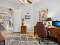 Under contract -accepting backup offers. Spanish Mediterranean luxury in Las Colinas within the Mission Resort community, offering golf course and illuminated bridge views from multiple rooms. This 4 bedroom, 3.5 bath home is situated on a quiet street and features 14 foot plus ceilings, abundant natural light, and an open layout. The kitchen includes granite countertops, natural gas cooking, stainless appliances, and water softening and filtration. A rare highlight is two full primary suites, one on the main level and one upstairs, ideal for multi generational living. The upstairs suite features a private balcony overlooking the golf course and illuminated bridge. Additional features include a wet bar, ceramic tile flooring, and scenic views throughout. Residents enjoy access to golf, dining, spa, fitness center, pool, tennis, pickleball, walking paths, and lakes. Membership required for amenity access. Social or golf membership options. Convenient to Mount Dora, Tavares, Orlando