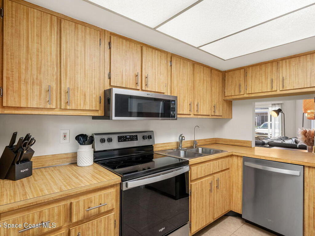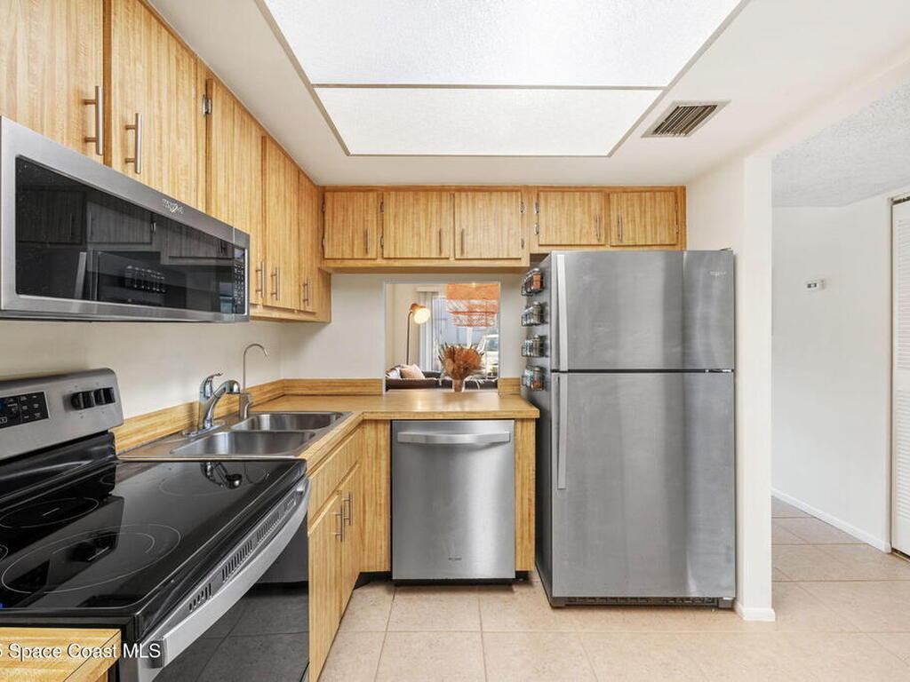 Welcome to Pinewood Village, a well-maintained community centrally located in the heart of Brevard County. This ground-floor 1-bedroom, 1.5-bath condo is move-in ready and ideal for first-time buyers, snowbirds, or anyone looking for low-maintenance living. Inside, enjoy an open-concept layout with tile flooring throughout and a bright kitchen with updated appliances. A washer and dryer are included for added convenience. The location offers easy access to beaches, shopping, dining, and the vibrant EGAD arts district just minutes away. The low HOA fee covers water, WiFi, cable, trash, sewer, and roof replacement, providing excellent value. Community amenities include a pool, tennis courts, and pickleball. Association financials are in good standing and available upon request.